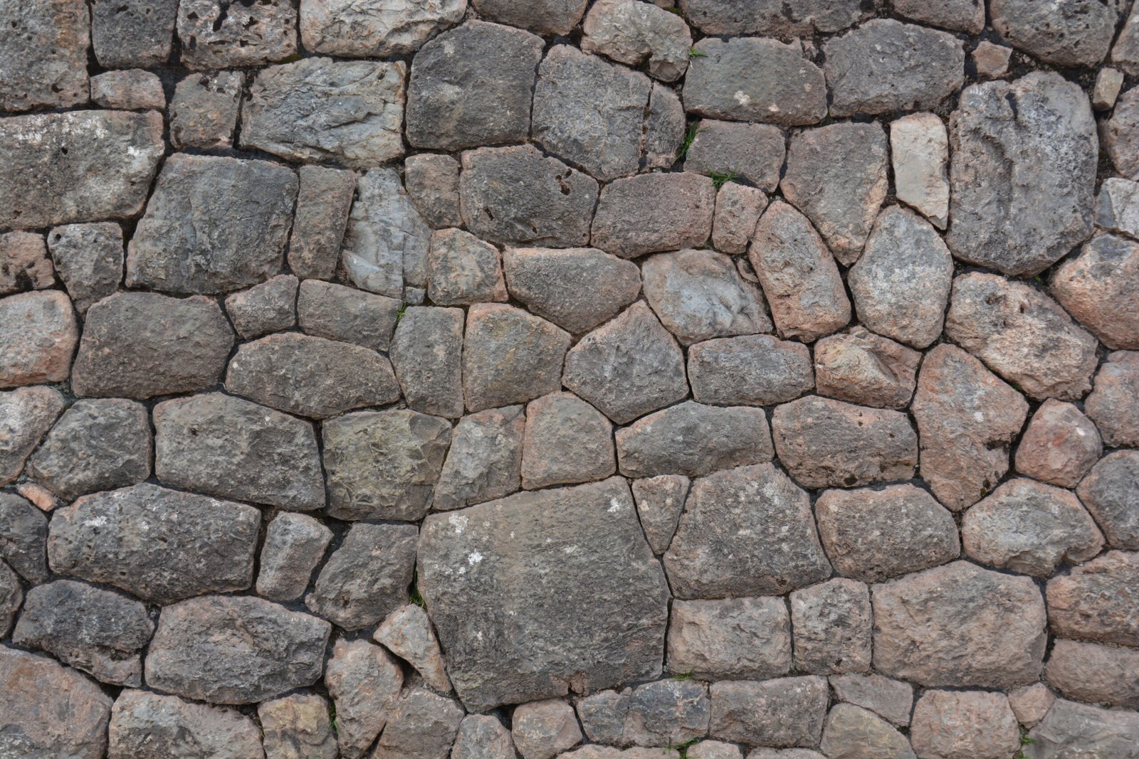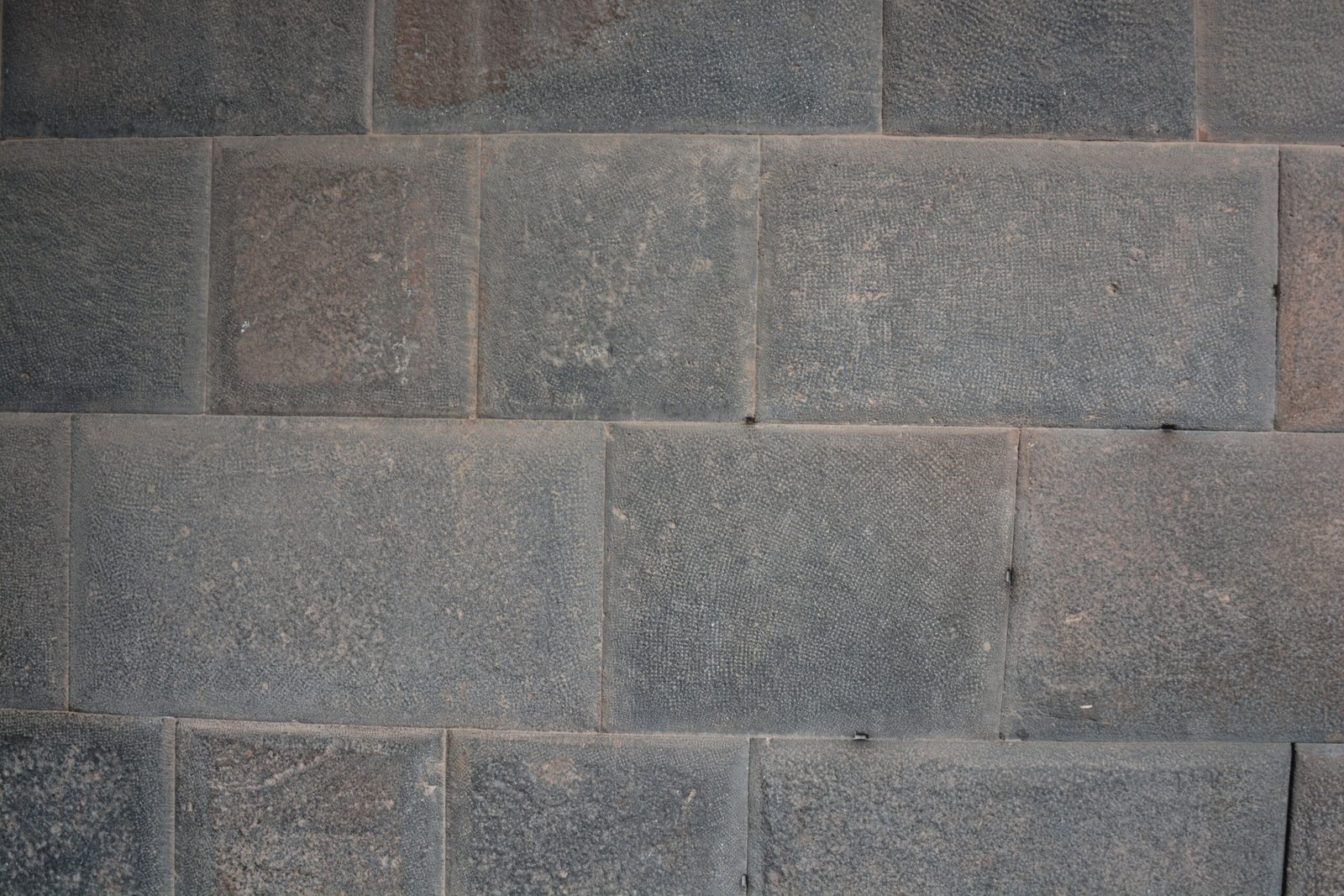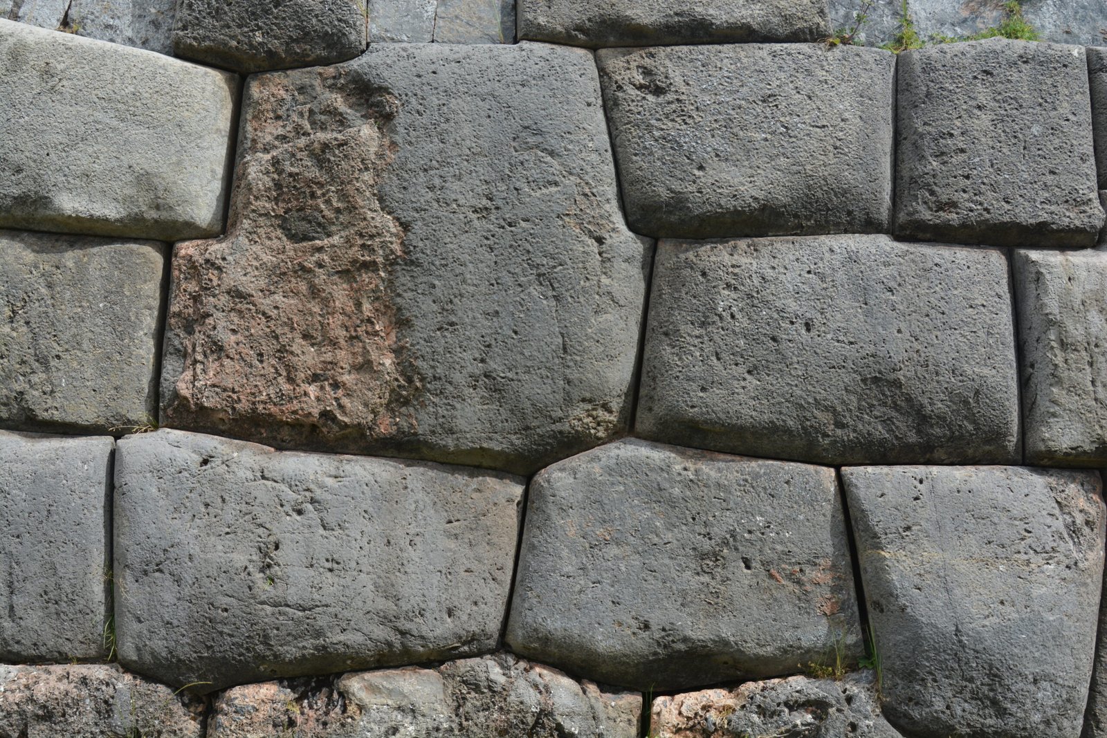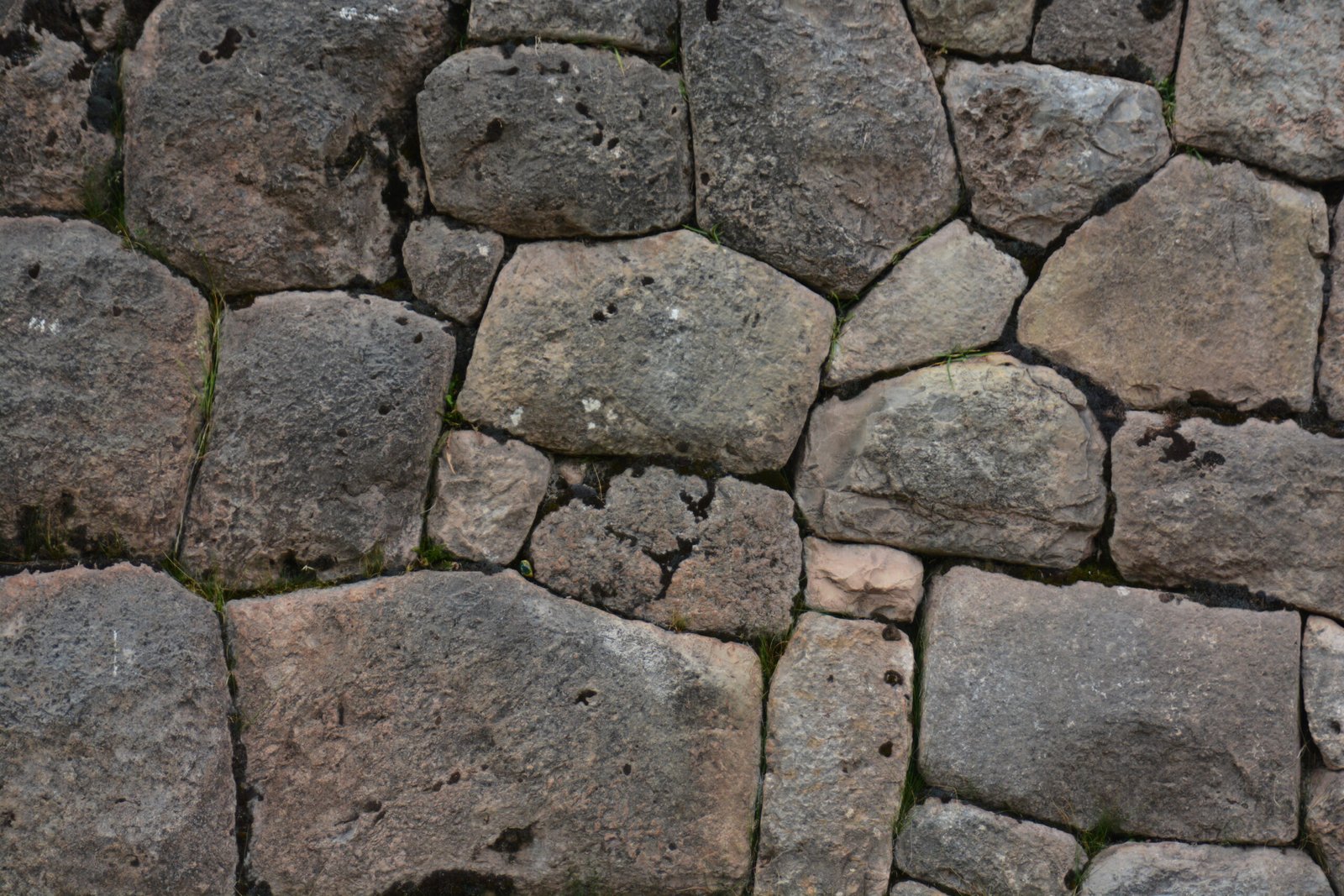 A detail view of cut and dressed stone in Sacsayhuaman, on the mountain overlooking Cusco. The larger of these stones were easily four feet tall.