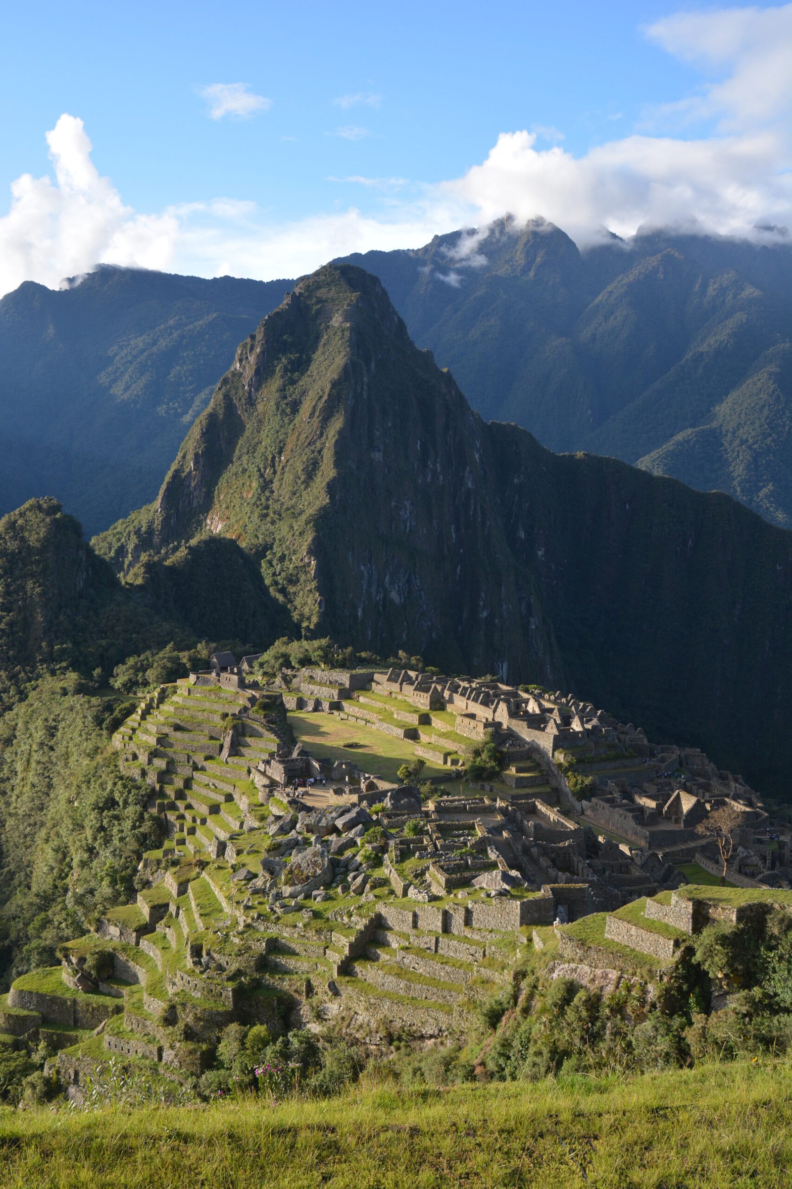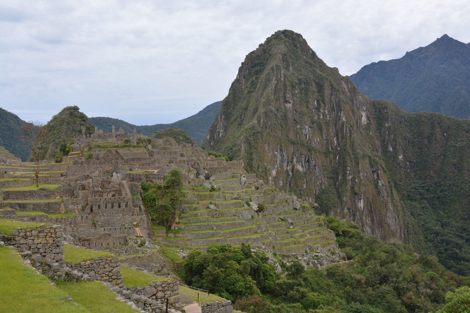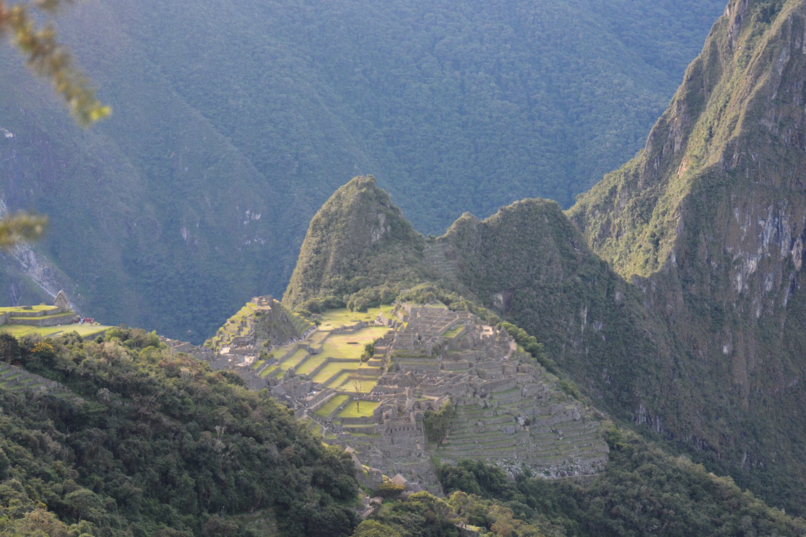 A view of Machu Picchu from below the Sun Gate in late afternoon.