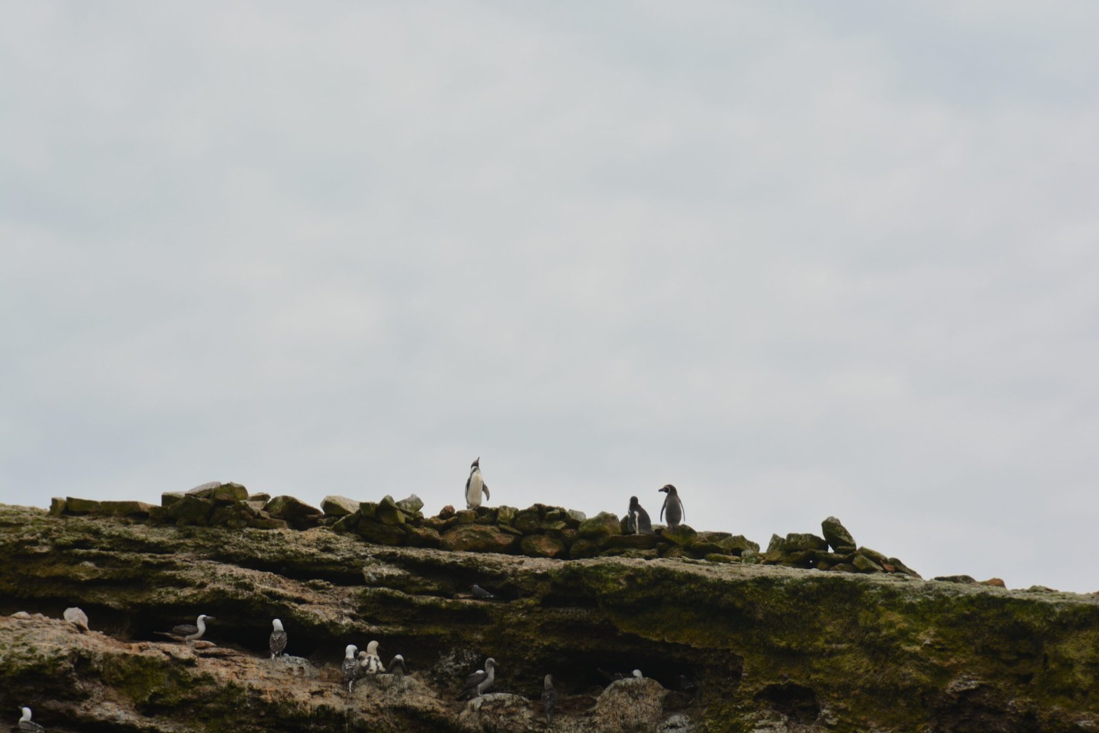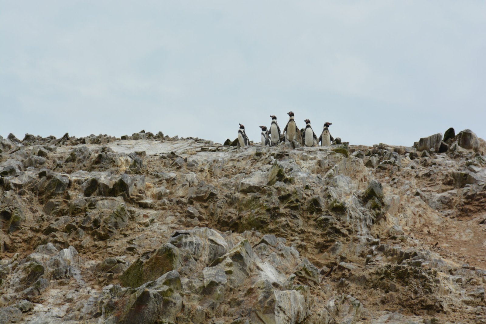 Humboldt penguins on the Ballestas Islands in Peru, one of the different types of marine animals on these islands.