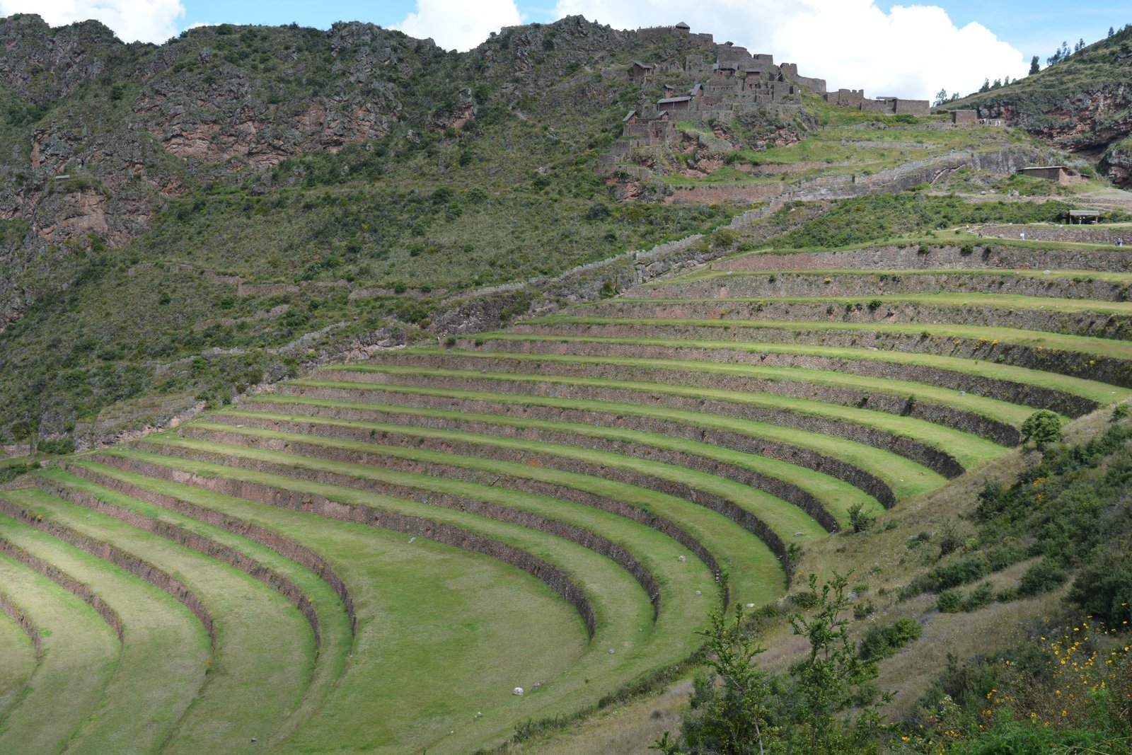 A view of agricultural terraces at the Pisaq Archeological Site, located in the Sacred Valley region of Peru. This area was a major farming region during the time of the Inca empire.