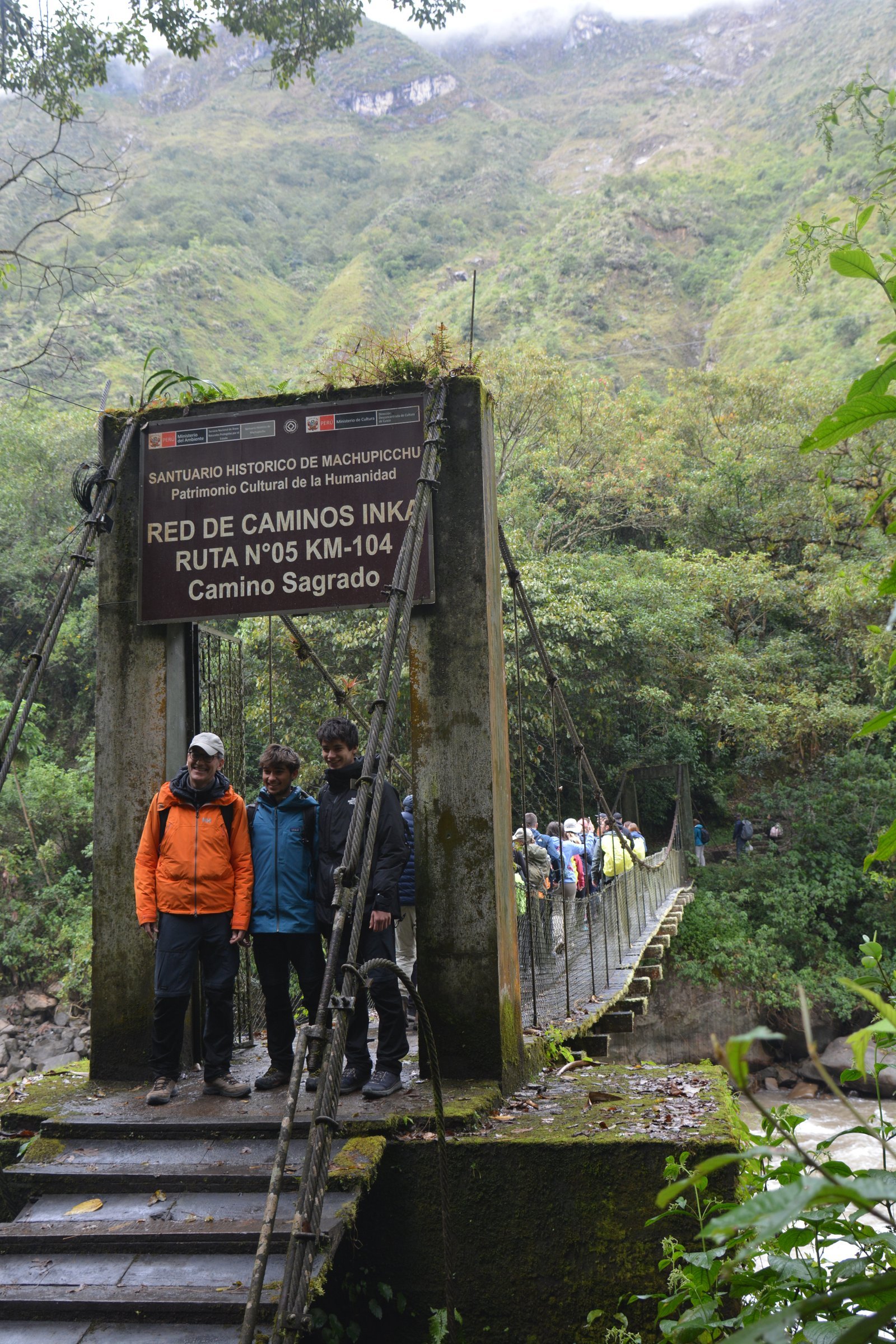 A walking bridge across the Urubamba River, marking the starting Point of the Inca trail at the104KM marker along the railway line.