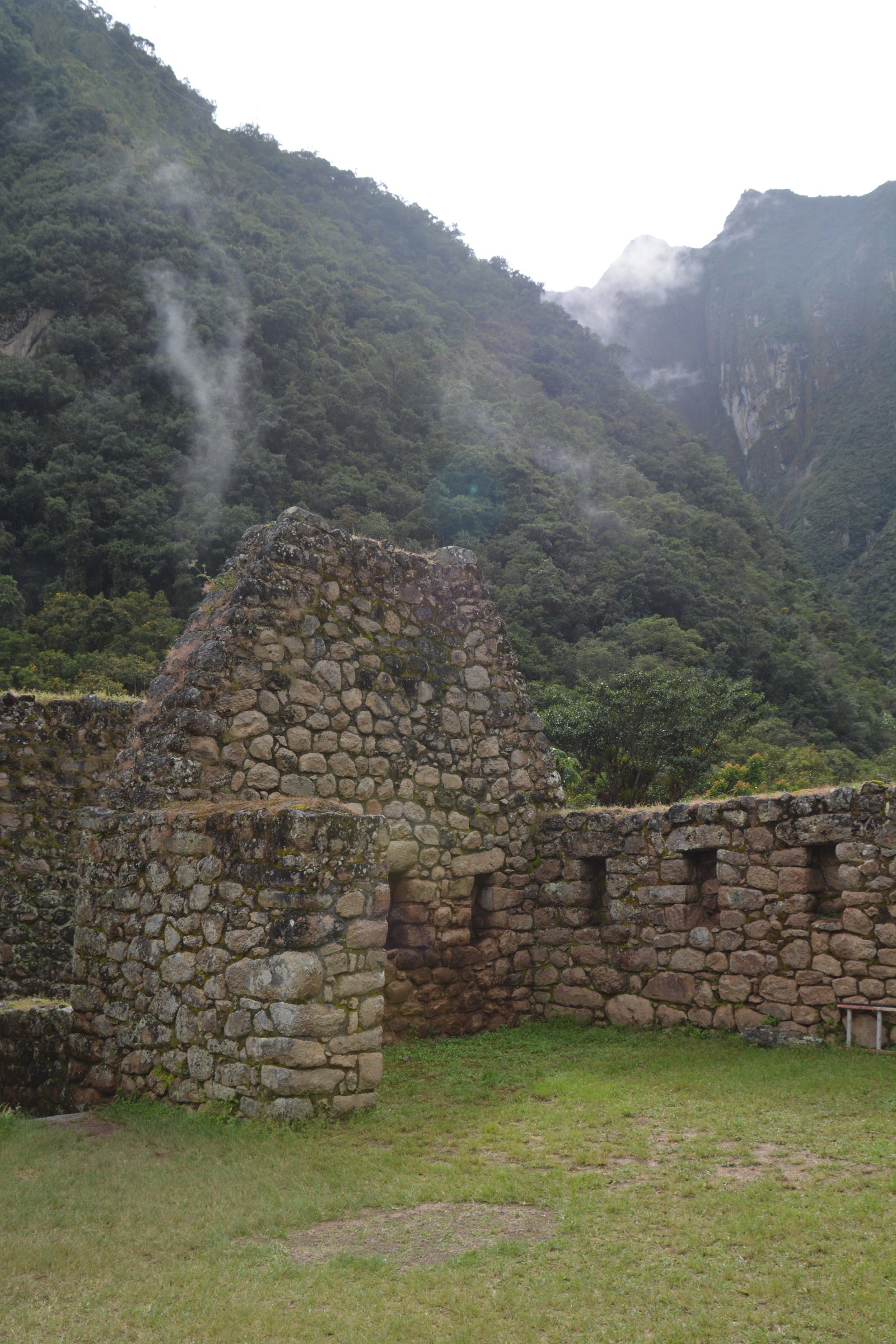 Just past the access to the Inca Trail at marker 104KM, stands the remains of a small Inca village. This was once a small house. Notice the niches recessed into the walls. This is a typical feature of Incan construction.