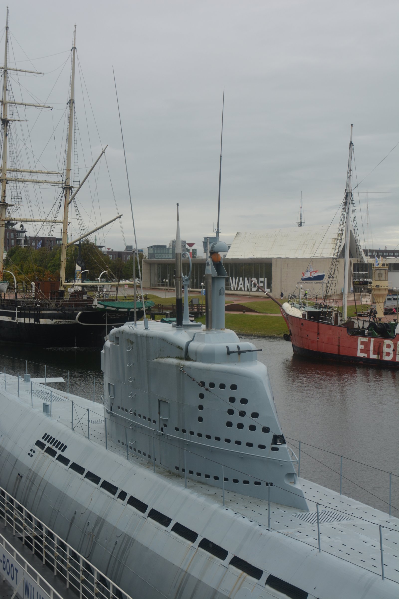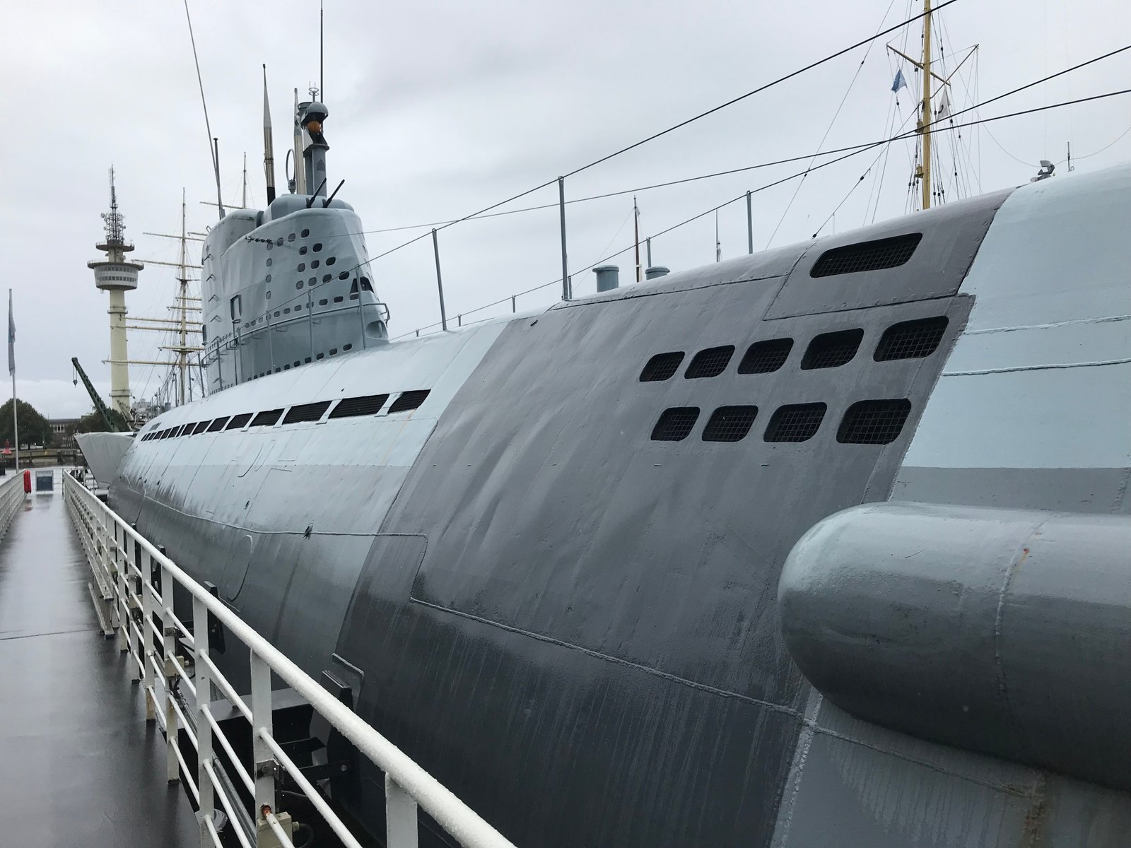 I had the great opportunity to spend a few hours in Bremerhaven, Germany back in August 2018. This is both a major seaport on the North Sea, and home of the German maritime Museum. For me, the greatest exhibit there was the WWII era Type XXI submarine “Wilhelm Bauer.” The only surviving sub of the Type XXI U-boat class, she was commissioned as U-2540 in February 1945. In March 1945 she was scuttled by her crew in the North Sea as Germany surrendered. In 1957 the sub was salvaged, renovated, and placed back into commission as a training sub renamed Wilhelm Bauer. She was ultimately decommissioned in August 1968 and turned over to the German Maritime Museum, open for public display.