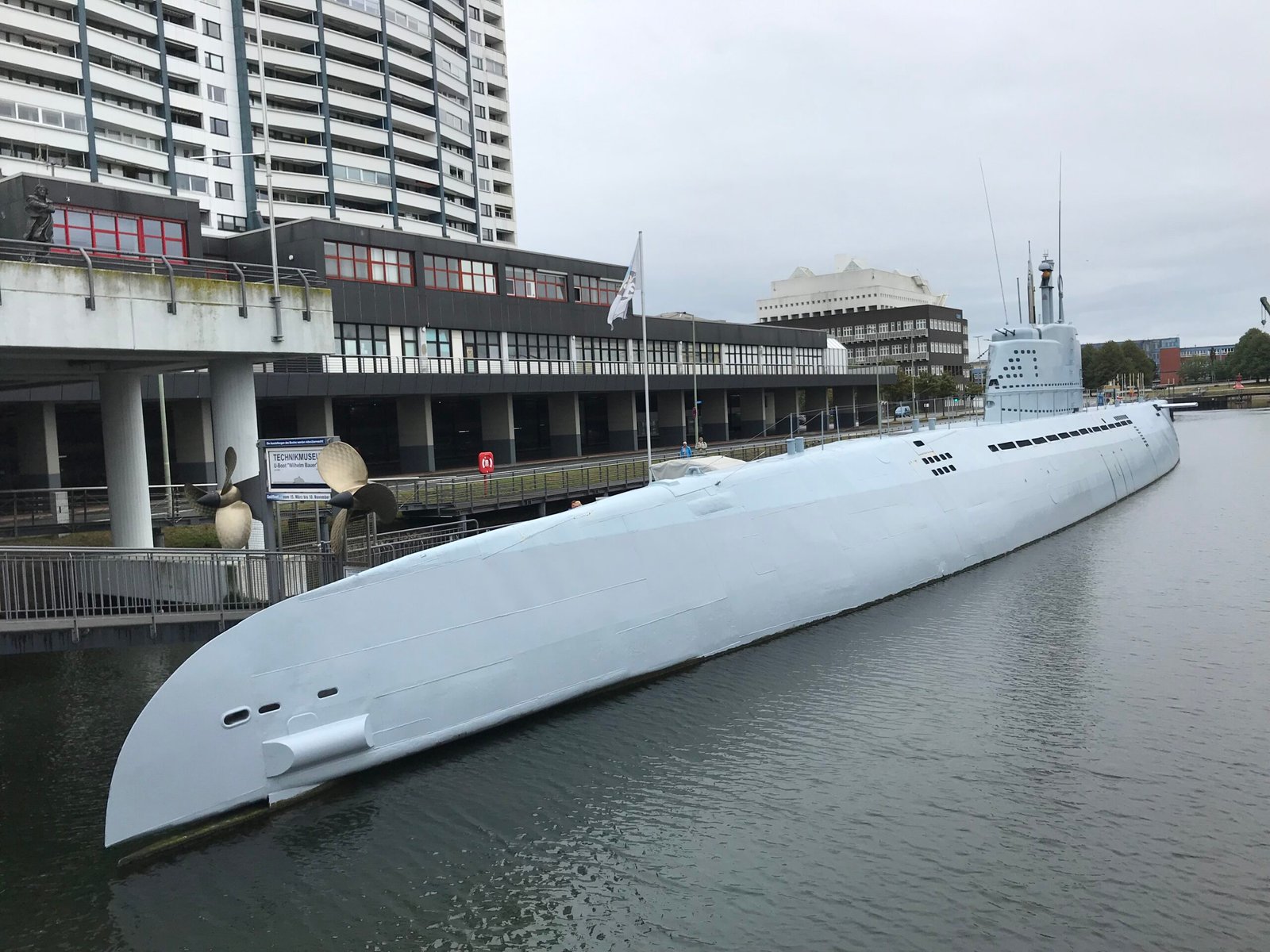 I had the great opportunity to spend a few hours in Bremerhaven, Germany back in August 2018. This is both a major seaport on the North Sea, and home of the German maritime Museum. For me, the greatest exhibit there was the WWII era Type XXI submarine “Wilhelm Bauer.” The only surviving sub of the Type XXI U-boat class, she was commissioned as U-2540 in February 1945. In March 1945 she was scuttled by her crew in the North Sea as Germany surrendered. In 1957 the sub was salvaged, renovated, and placed back into commission as a training sub renamed Wilhelm Bauer. She was ultimately decommissioned in August 1968 and turned over to the German Maritime Museum, open for public display.