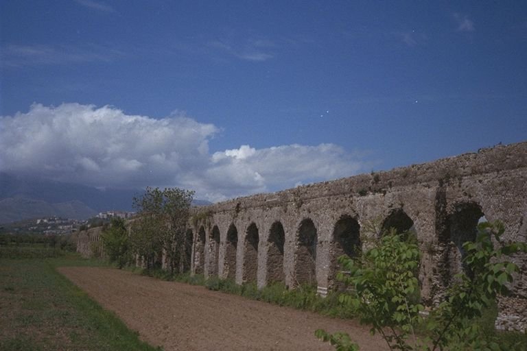 The remains of the Roman Aqueduct of Minturnae, located in Minturno. Built between the end of the Roman Republic and the beginning of the Empire, the aqueduct carried water from a spring at the foot of the Aurunci Mountains to the ancient city of Minturnae, which was strategically located along the Via Appia.