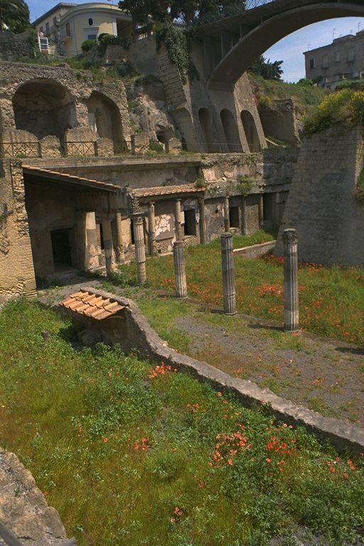 A view of the ruins of the ancient Roman town of Herculaneum. Buried in 79AD along with Pompeii when Vesuvius erupted. Only part of this site has been excavated as a large part is under the present-day town of Ercolono.