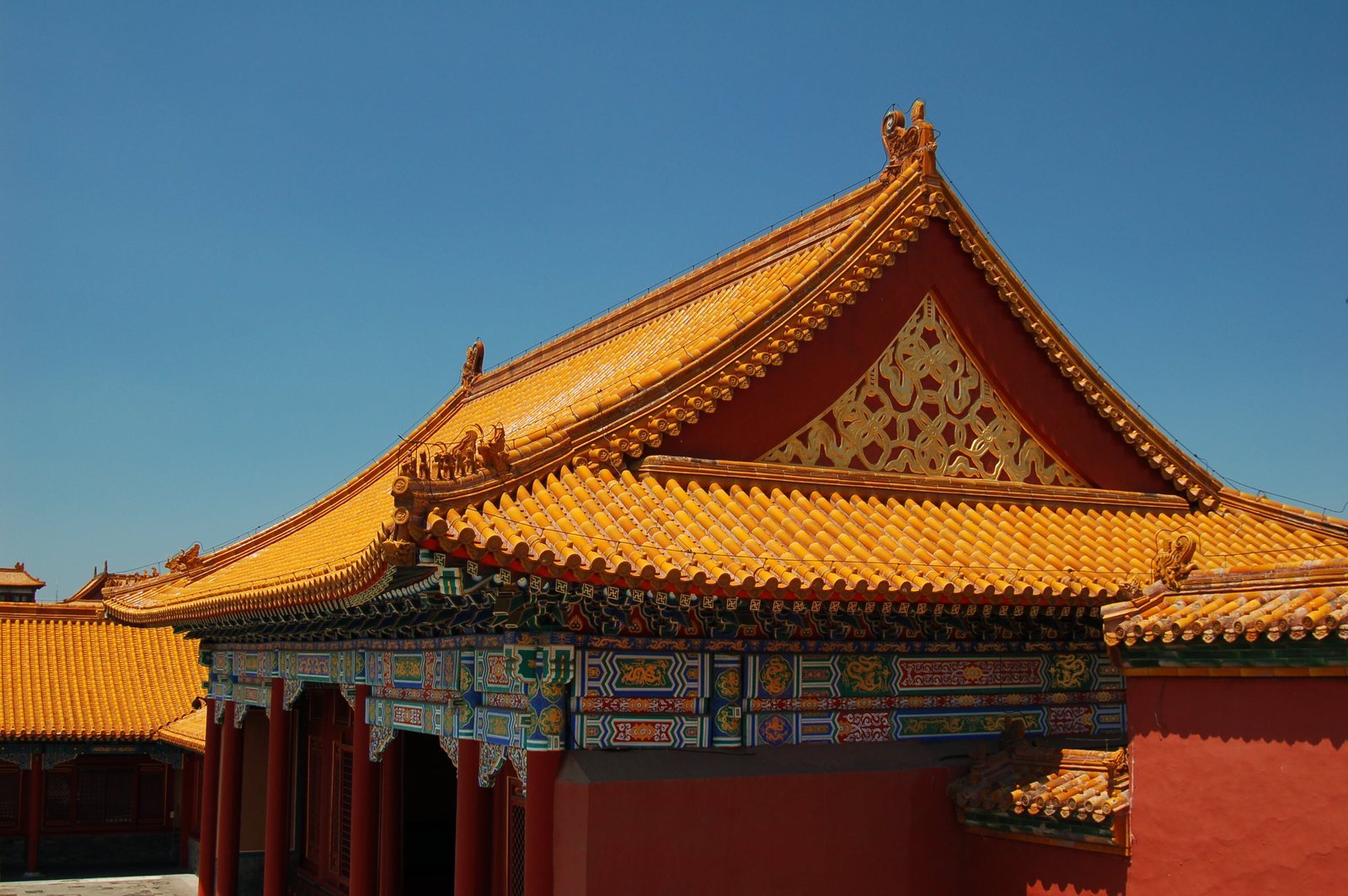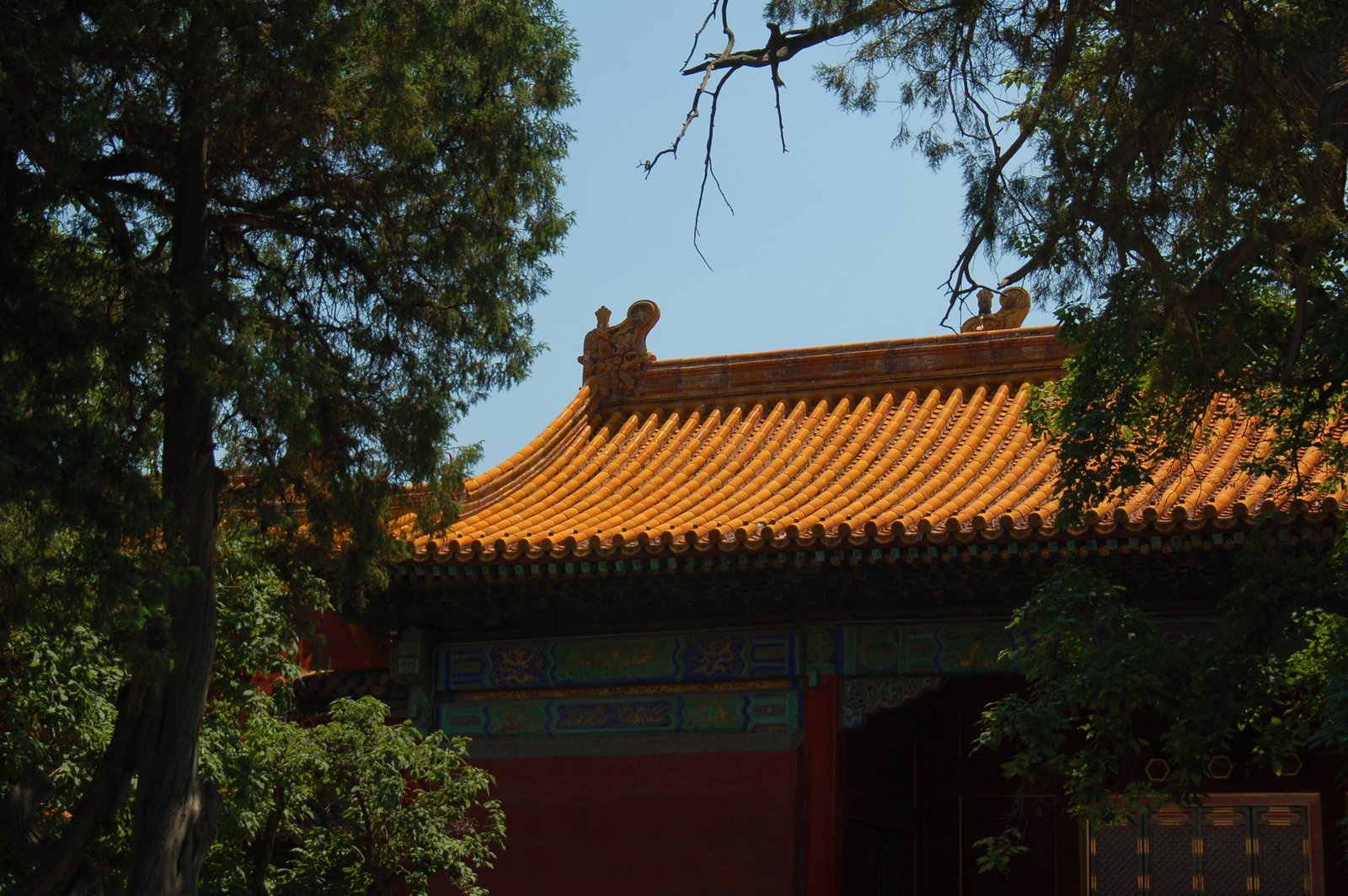 Just one of the many pavilions inside the Imperial Palace. The colors of the roofs all have significance. Yellow glazed tile roofs were reserved for the Emperor's Palaces. Beijing, China