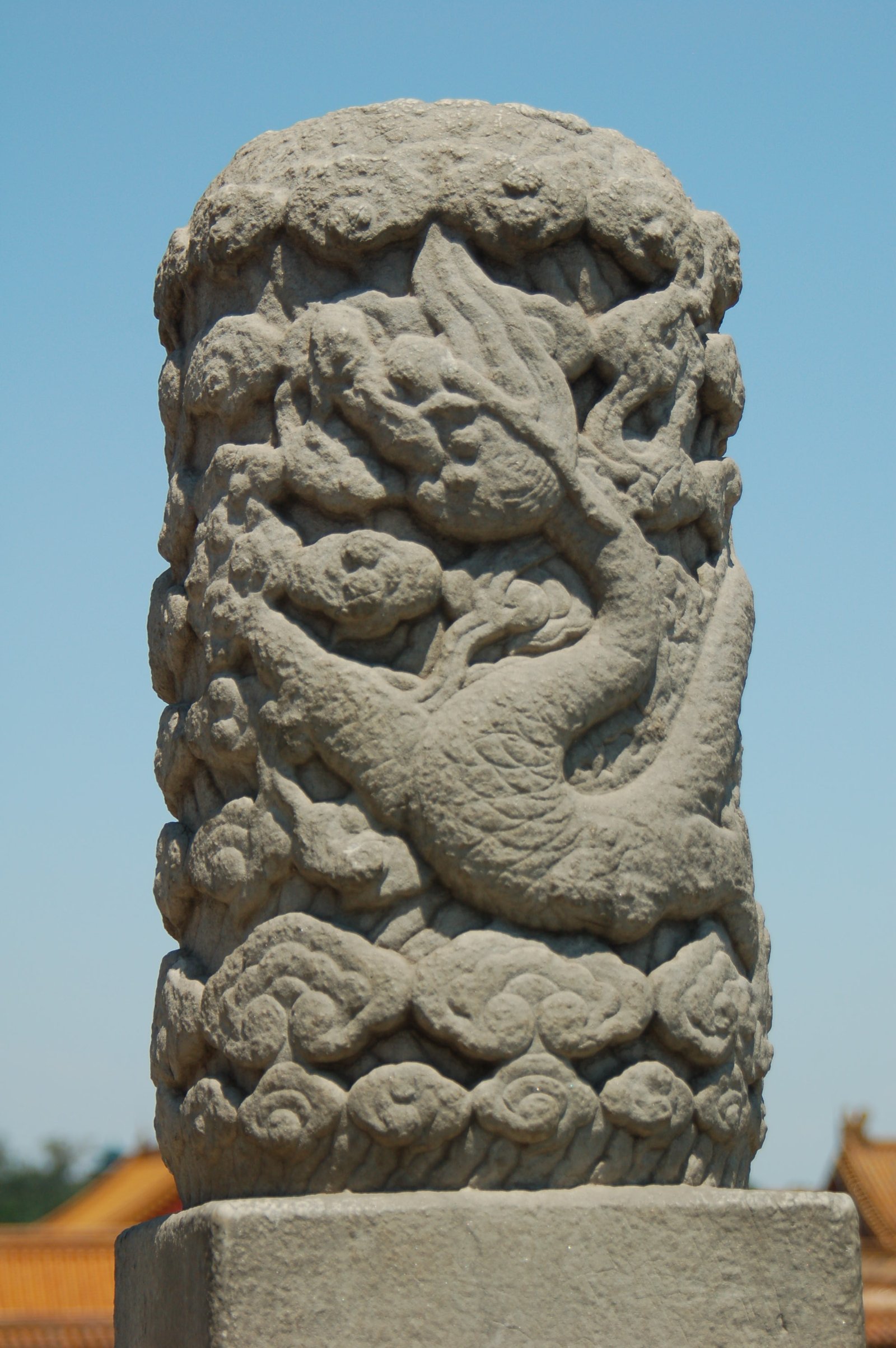 Detail of a Balustrade, a carved stone ornament along a railing. Inside the Imperial Palace, Beijing, China