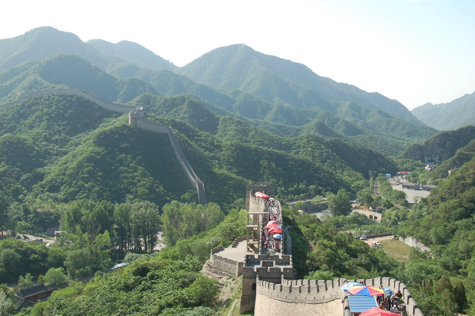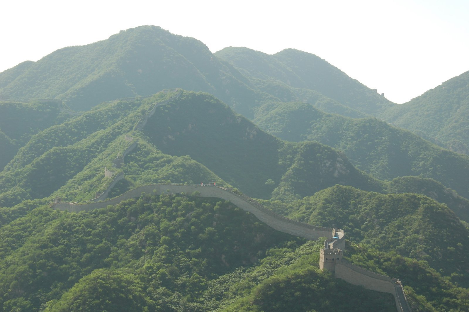 A View of the Great Wall snaking along the rugged mountaintops, Beijing, China