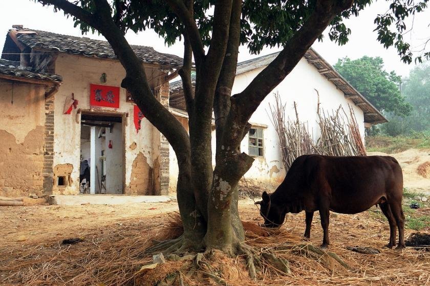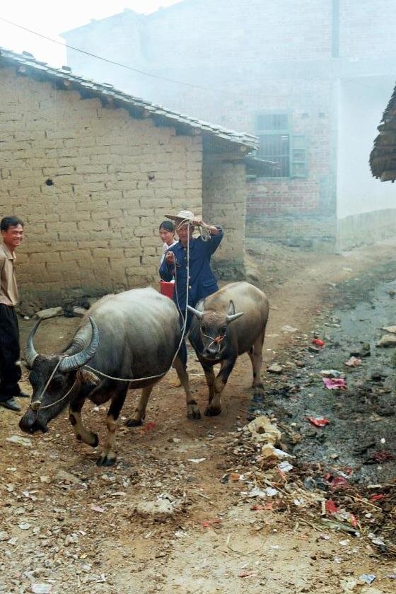 Water Buffalo and Farmhouse in the village of Baijing, China. Many of the homes in this village go back 100 years or more.
