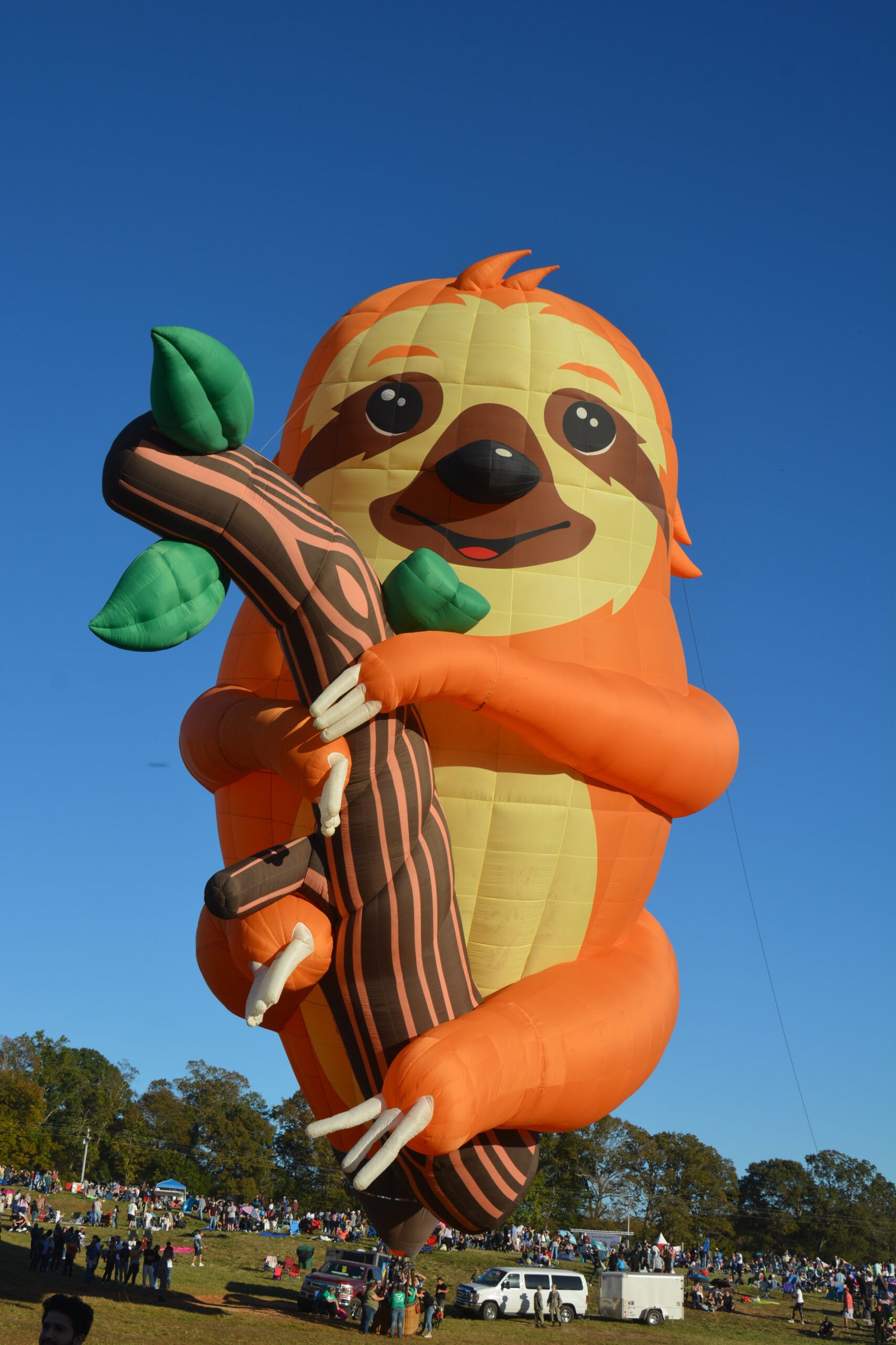 The Lizard Egg balloon floats off at the 2024 Carolina's Balloonfest. This was one of three "novelty" hot air balloons featured at the festival.