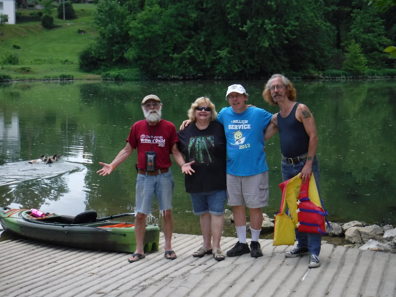 Winnie having a great time paddling the Trophy 126 "Arrau" on the Bull Run River, watching Ron pedaling in the Slayer Max 10.