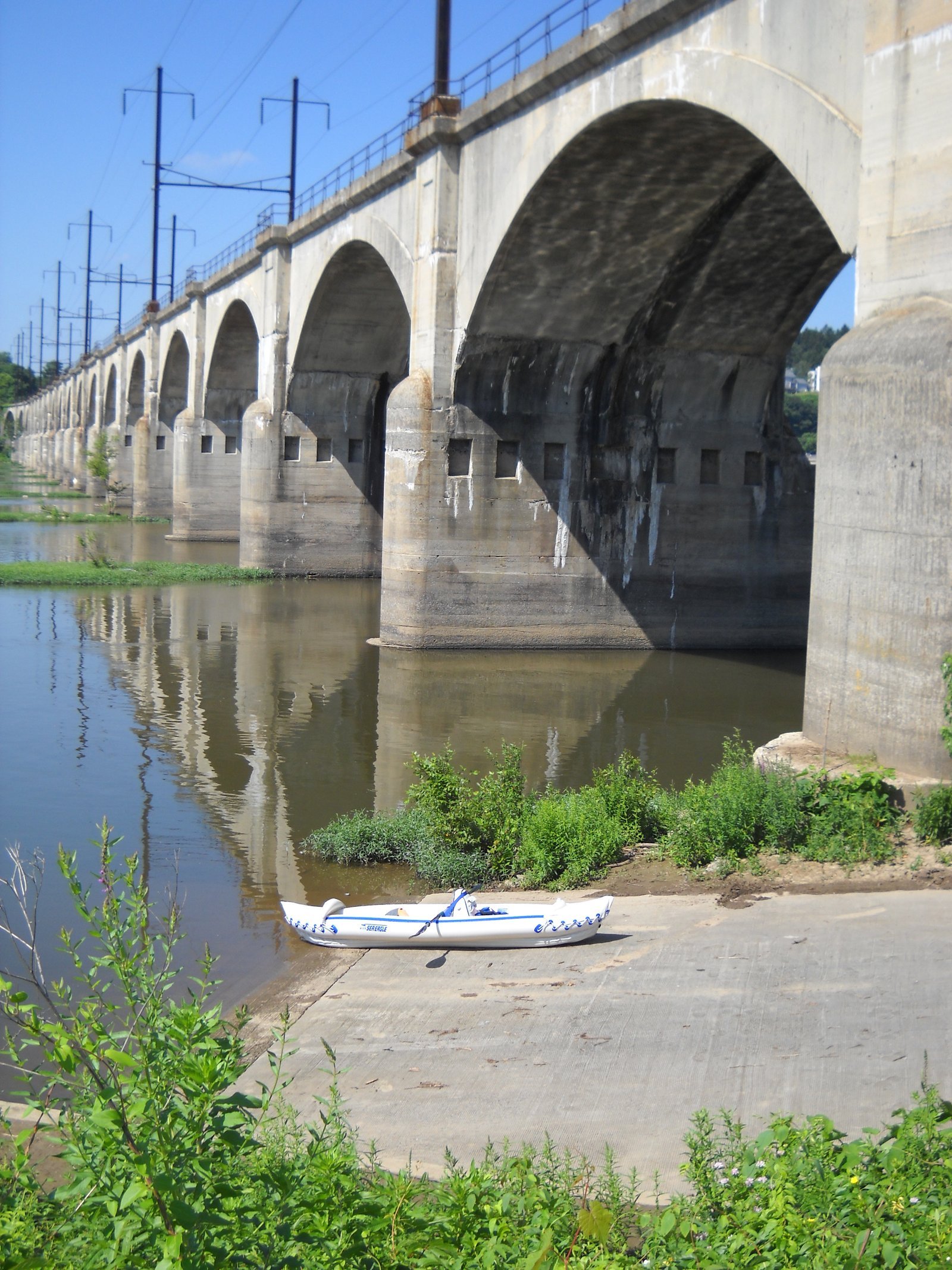 My Sea eagle 370 "Nemo II" getting ready for paddling on the Anacostia River in Washington, D.C. Twenty years ago this river was one of the most polluted rivers in the US, essentially an open sewer for Washington and adjoining Maryland. As of 2025, after extensive restoration, and construction of a massive sewer and water treatment system, this river is now able to sustain fish and is safe enough to swim in.