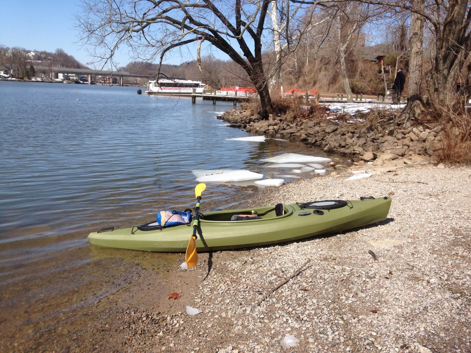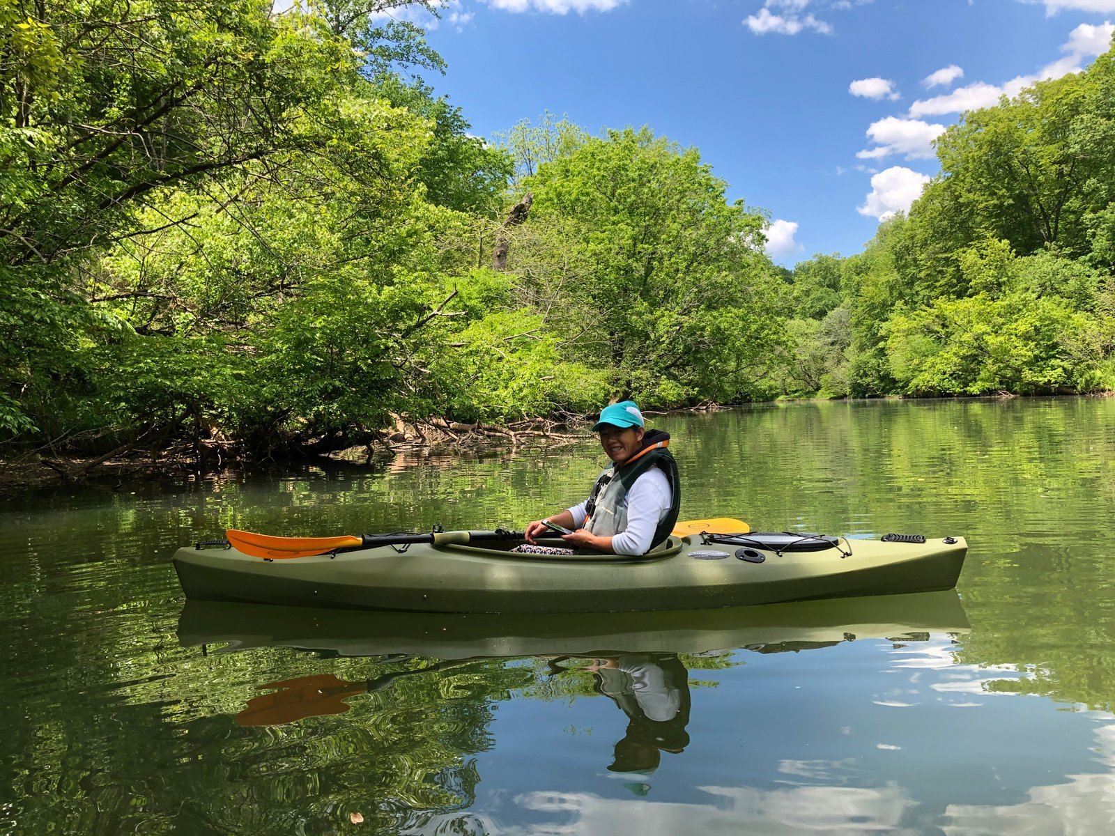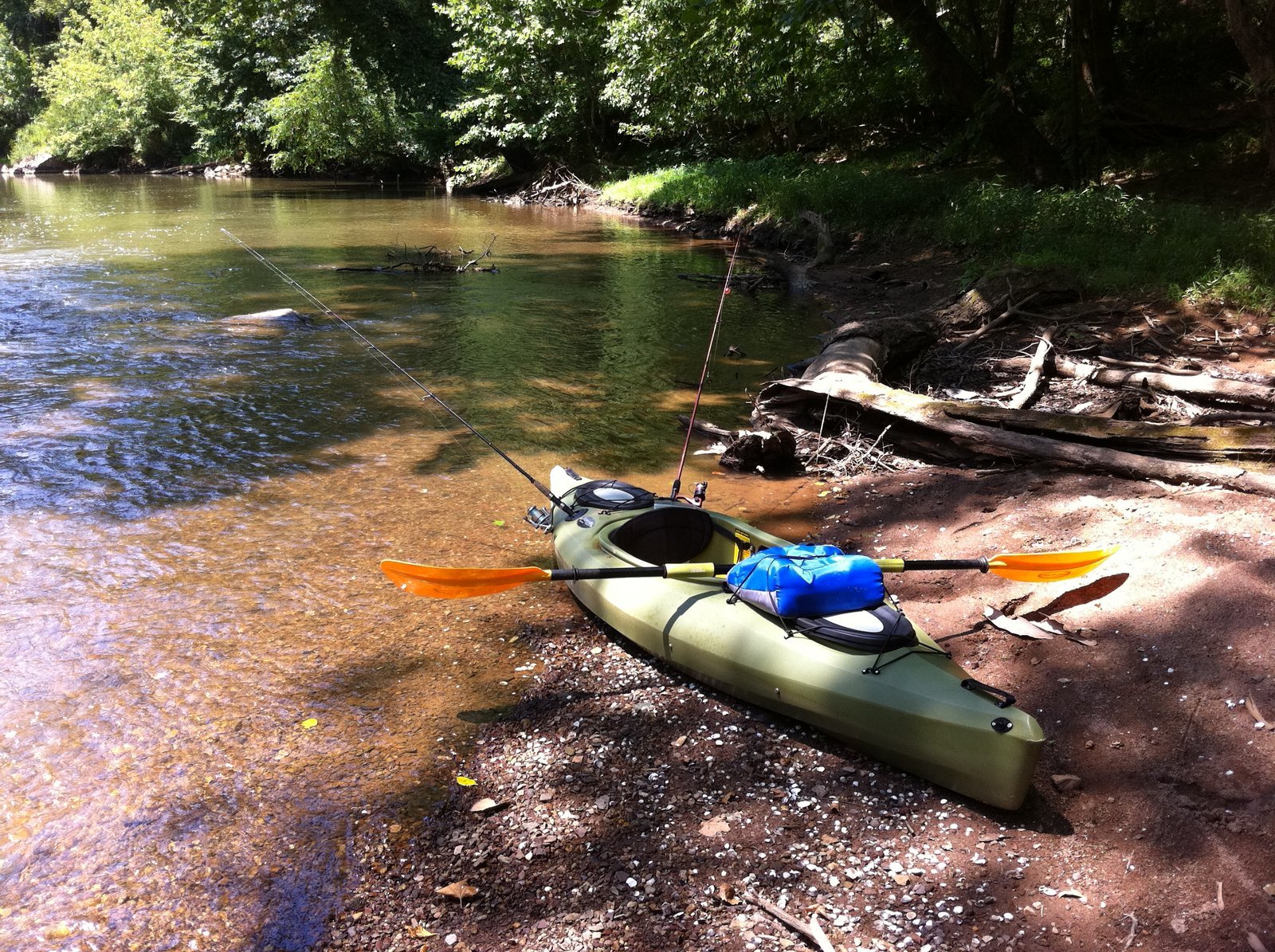 Pulled in and taking a break from paddling. On the Bull Run River in my Trophy 126 Fishing Kayak.