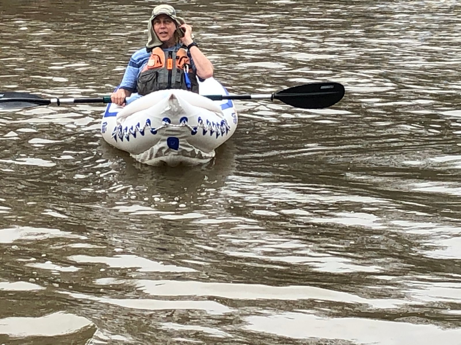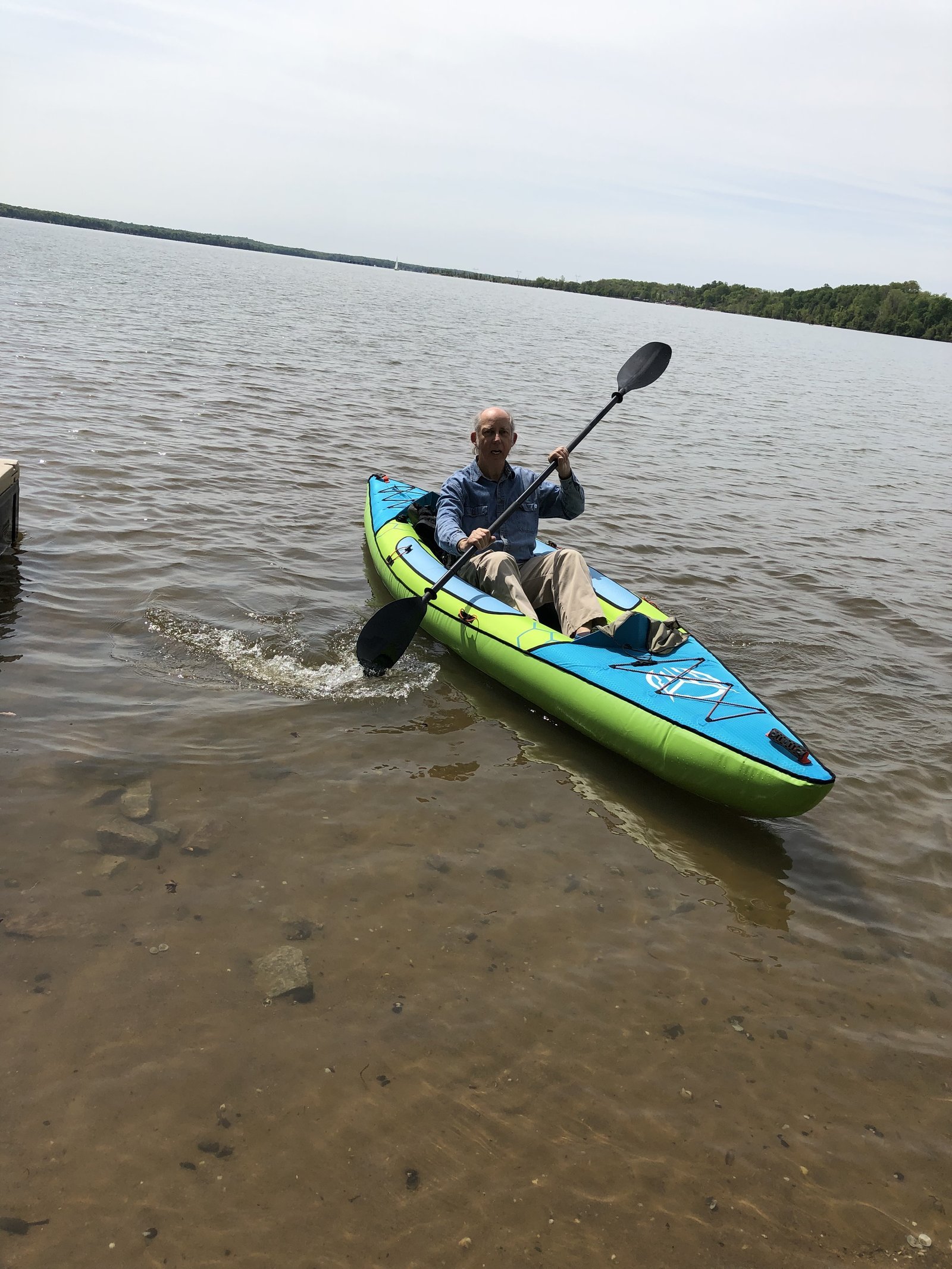 This is the maiden launch of a new kayak, an HO Sports Beacon thirteen foot inflatable. This boat has been named "Dragonfly."