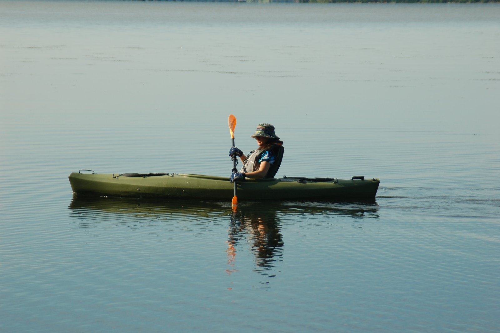 Paddling Along in a new toy, my Trophy 126 Fishing Kayak.