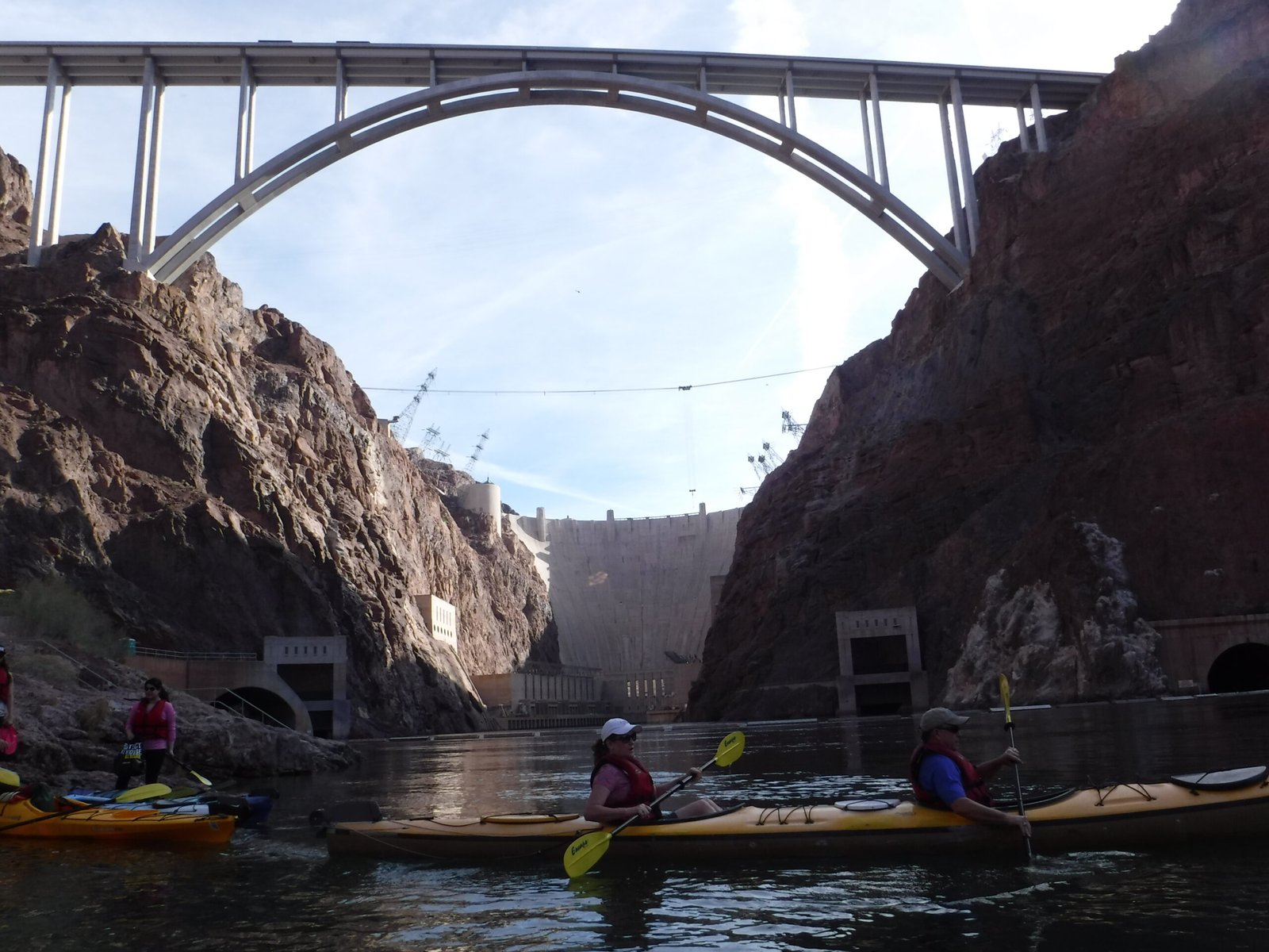 Hoover Dam from the kayak launch point on the lower Colorado River.