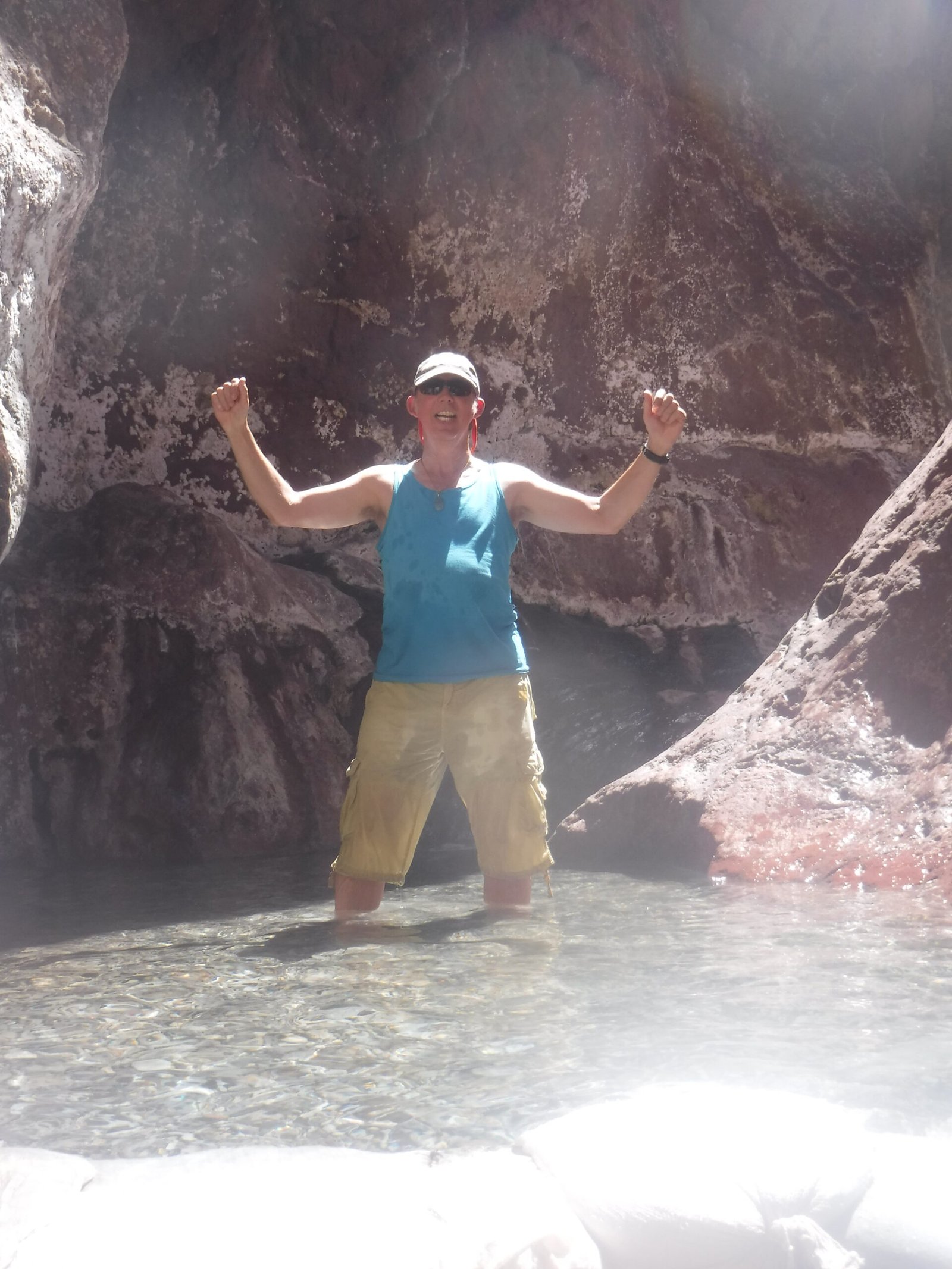 Ron enjoying a soak in a natural hot spring at Gold Strike Canyon, along the Colorado River.