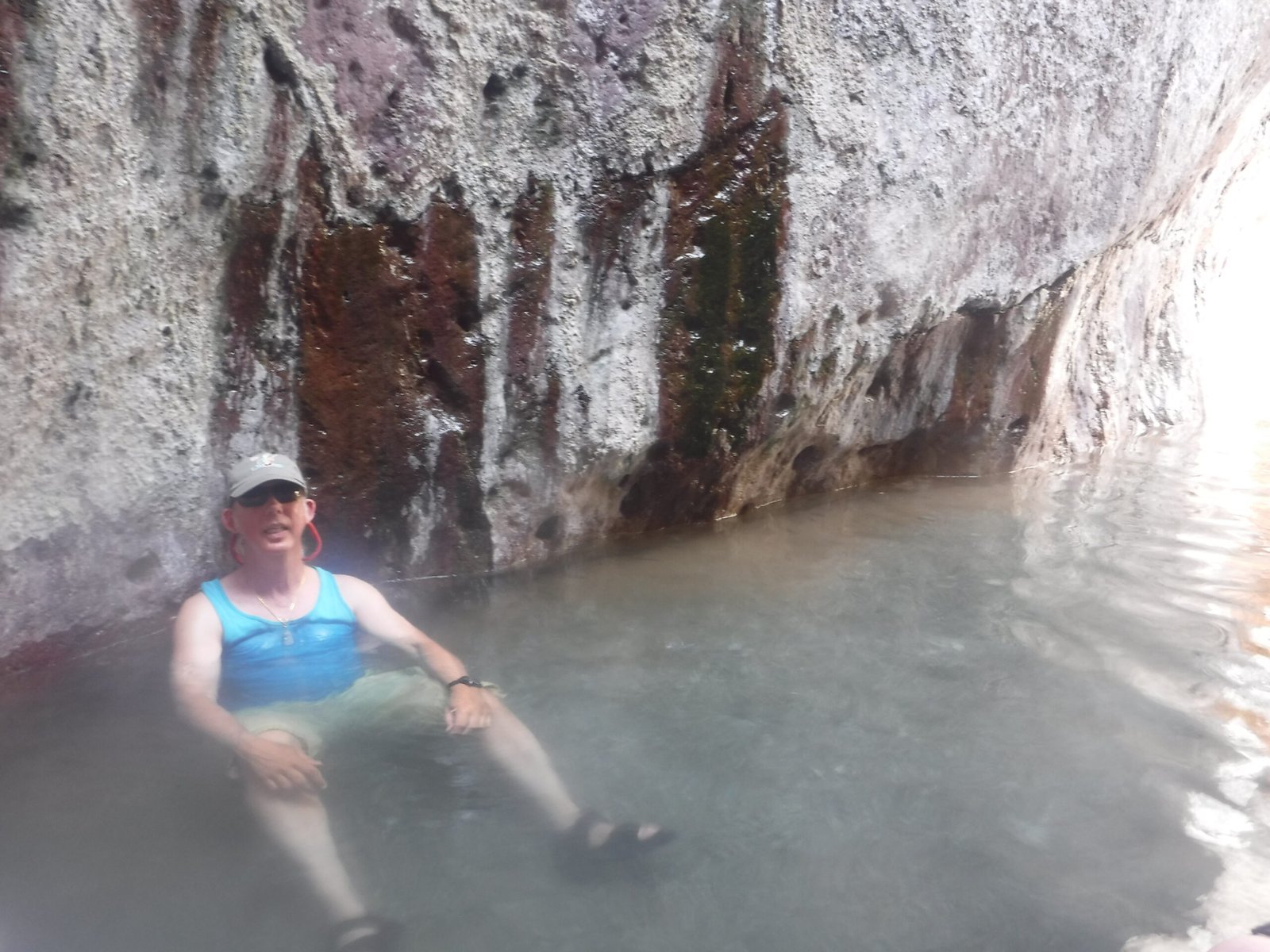 Ron in a 108 degree mineral water. A little too hot for comfort. This is at the headwaters of Arizona Hot Springs along the Colorado River.