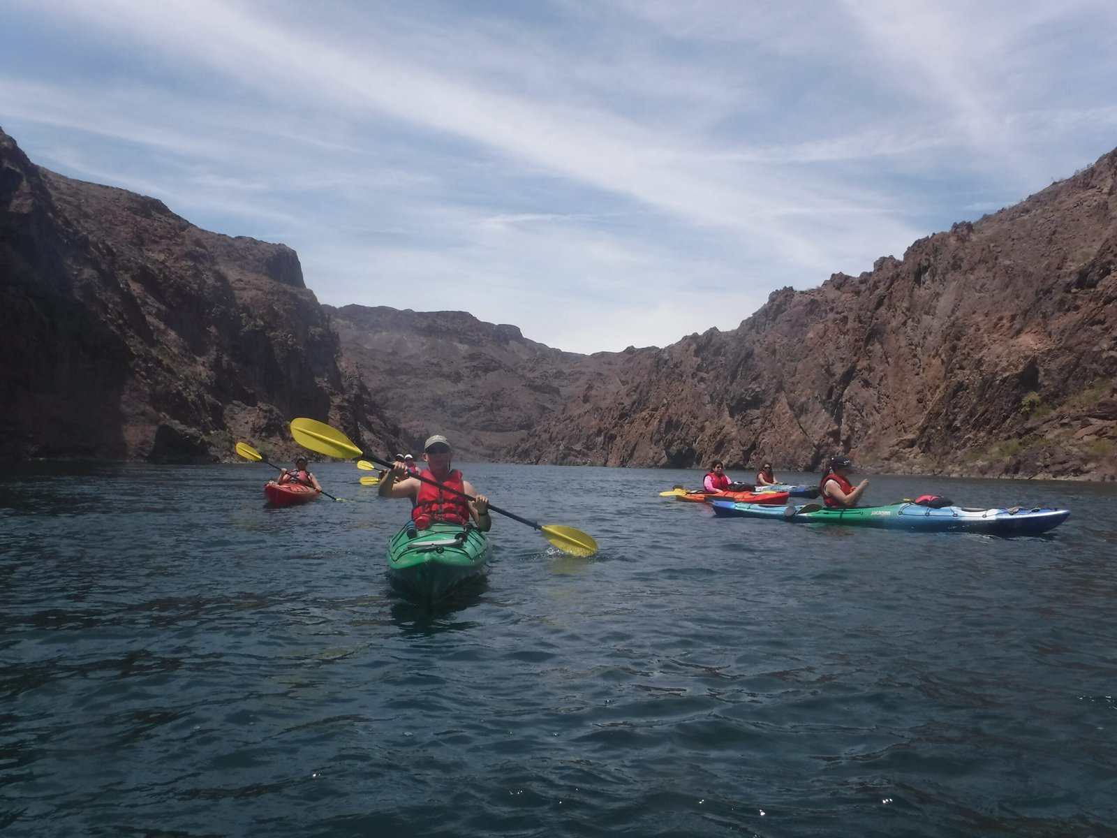 This is a collection of photos taken on a chartered kayak trip down the Colorado River on April 30, 2015. Our group started from just below Hoover Dam and paddled down the section of river passing through Black Canyon, finishing our trip at Willow Beach Marina about 12 miles downriver. Along the way we pulled out several times to hike up side canyons and explore natural hot springs and historical sites. This section of river is designated a national water trail and has several locations listed on the register of national historical sites.
