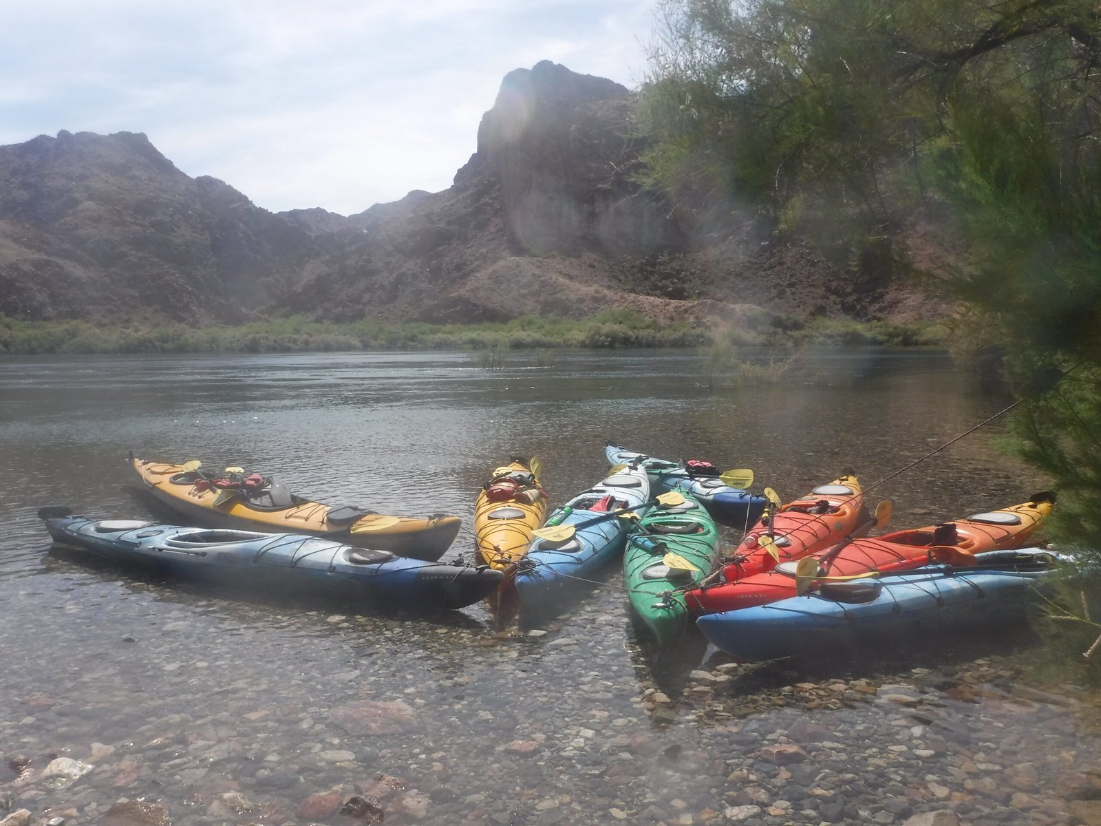 Our flotilla of kayaks tied up at the Gauger's House, where the Gauger's for this part of the canyon lived for one month at a time, providing a daily monitoring of the Colorado River's flow.