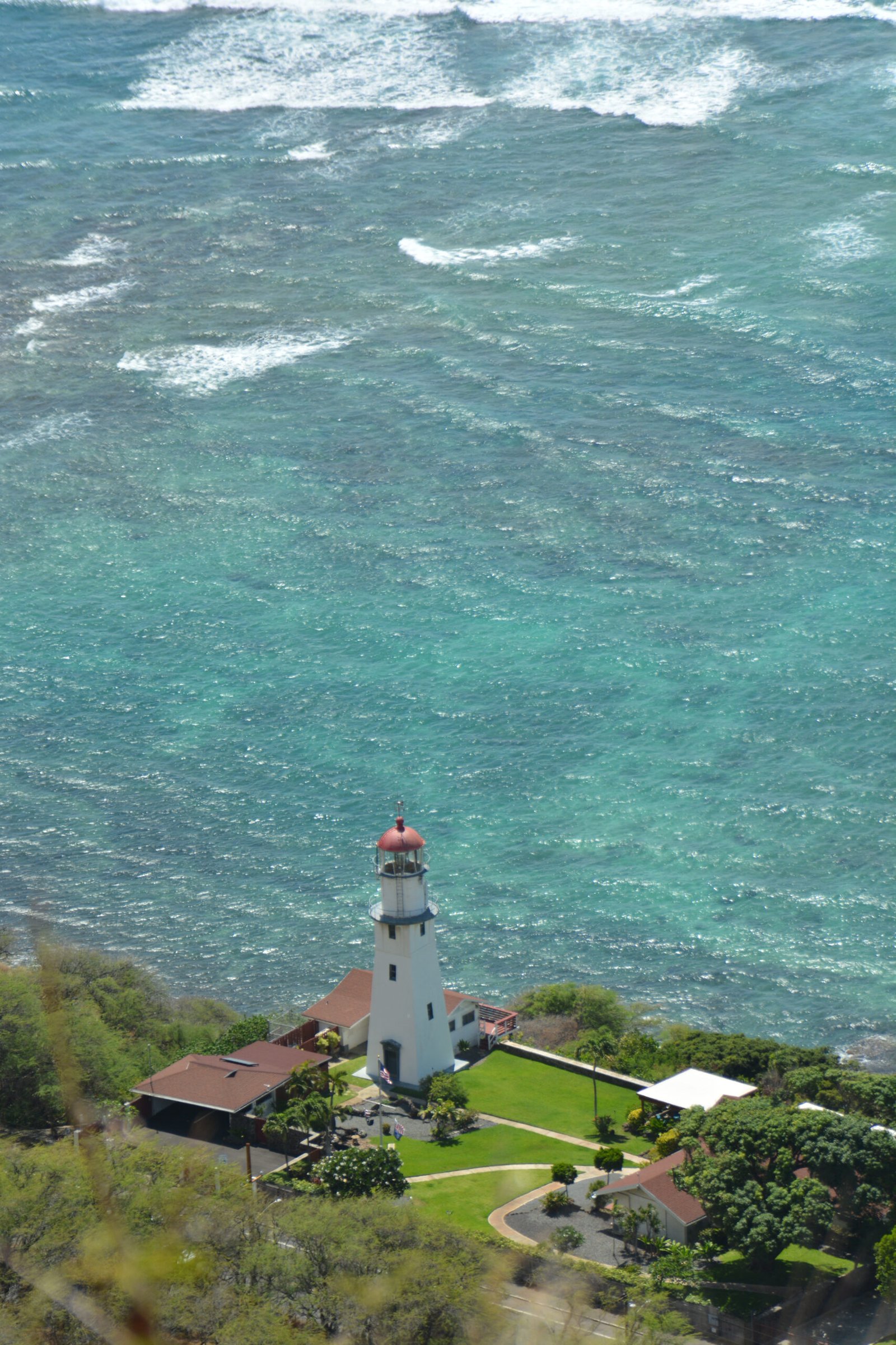 Looking from the top of Diamond Head down onto Diamond Head lighthouse. This is one of the many lighthouses ringing Oahu Island.