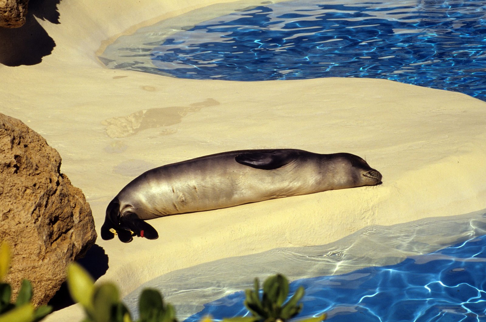 A monk seal, one of the species native to the Hawaiian Islands. This fellow was at a wildlife rescue and rehabilitation center near the Polynesian Cultural Center, on the northeast coast of Oahu, Hawaii.