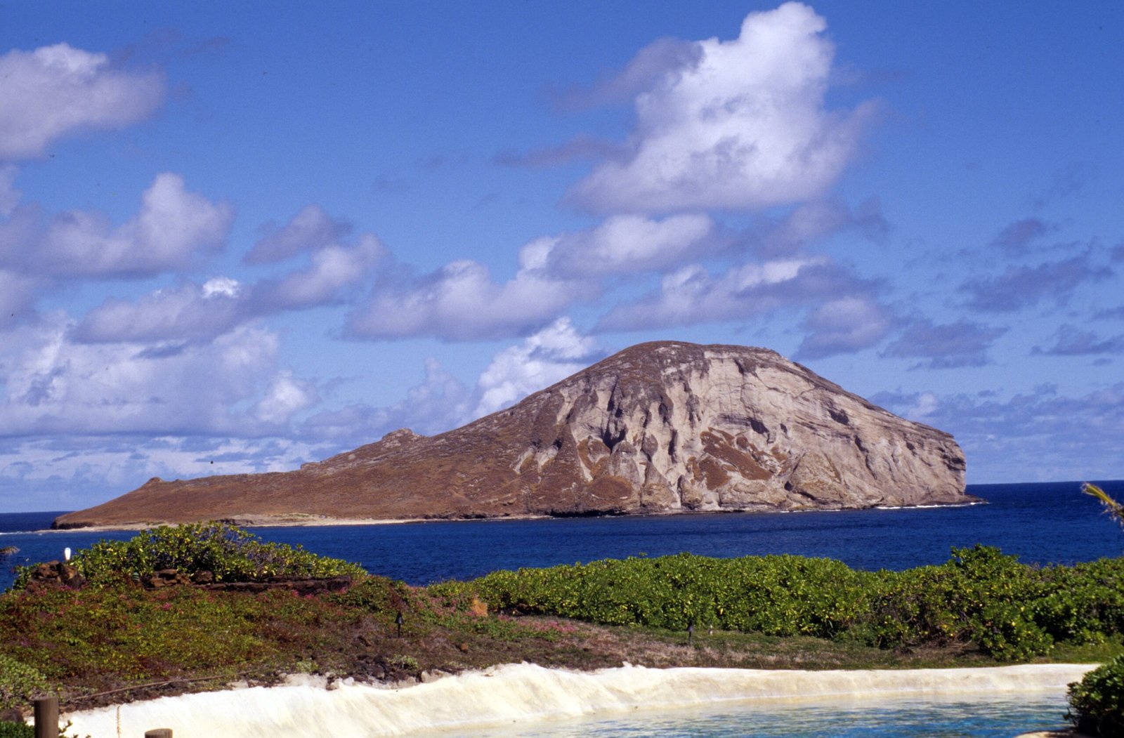 Mānana Island, off the windward coast of Oahu, Hawaii. This island is a bird and wildlife sanctuary. This island has also been known as "Rabbit Island" due to it's shape. In the Hawaiian language, mānana means "buoyant"