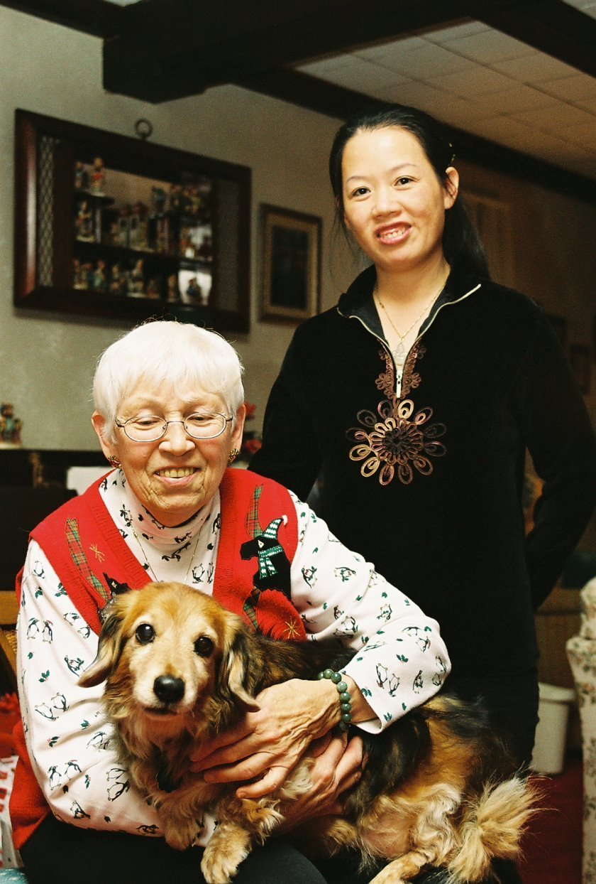 Mom, Winnie, and Moms Dog Sammy. Taken Christmas Day, 2005, at Mom's house in Burlingham, New York