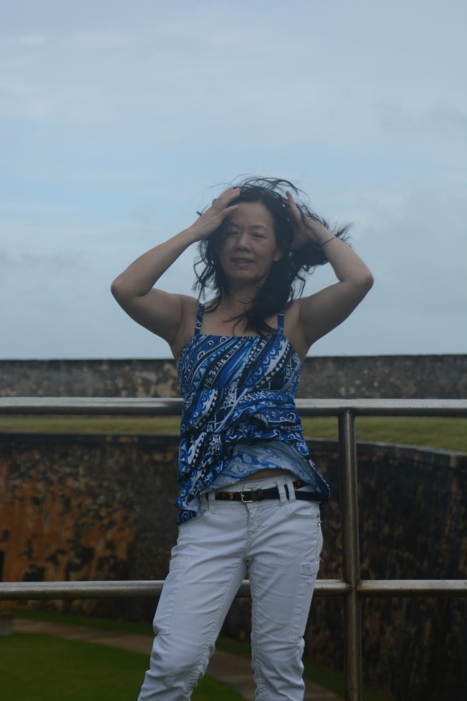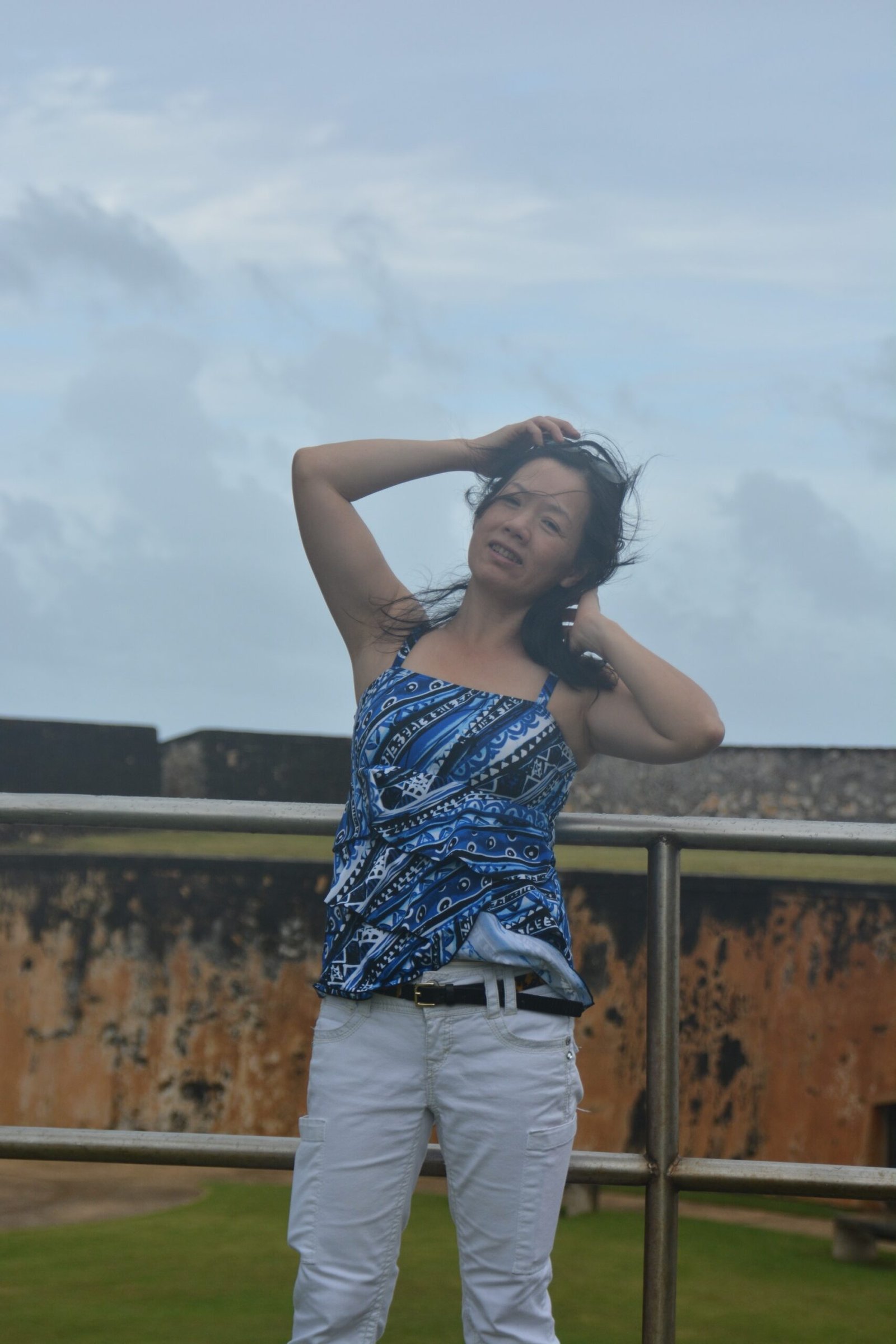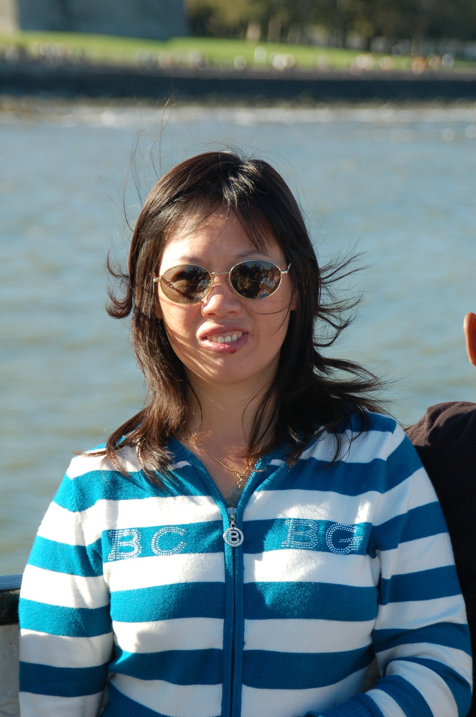 Winnie imitating the Statue of Liberty. On a trip in October 2010, after gaining her American Citizenship. New York Harbor, New York.