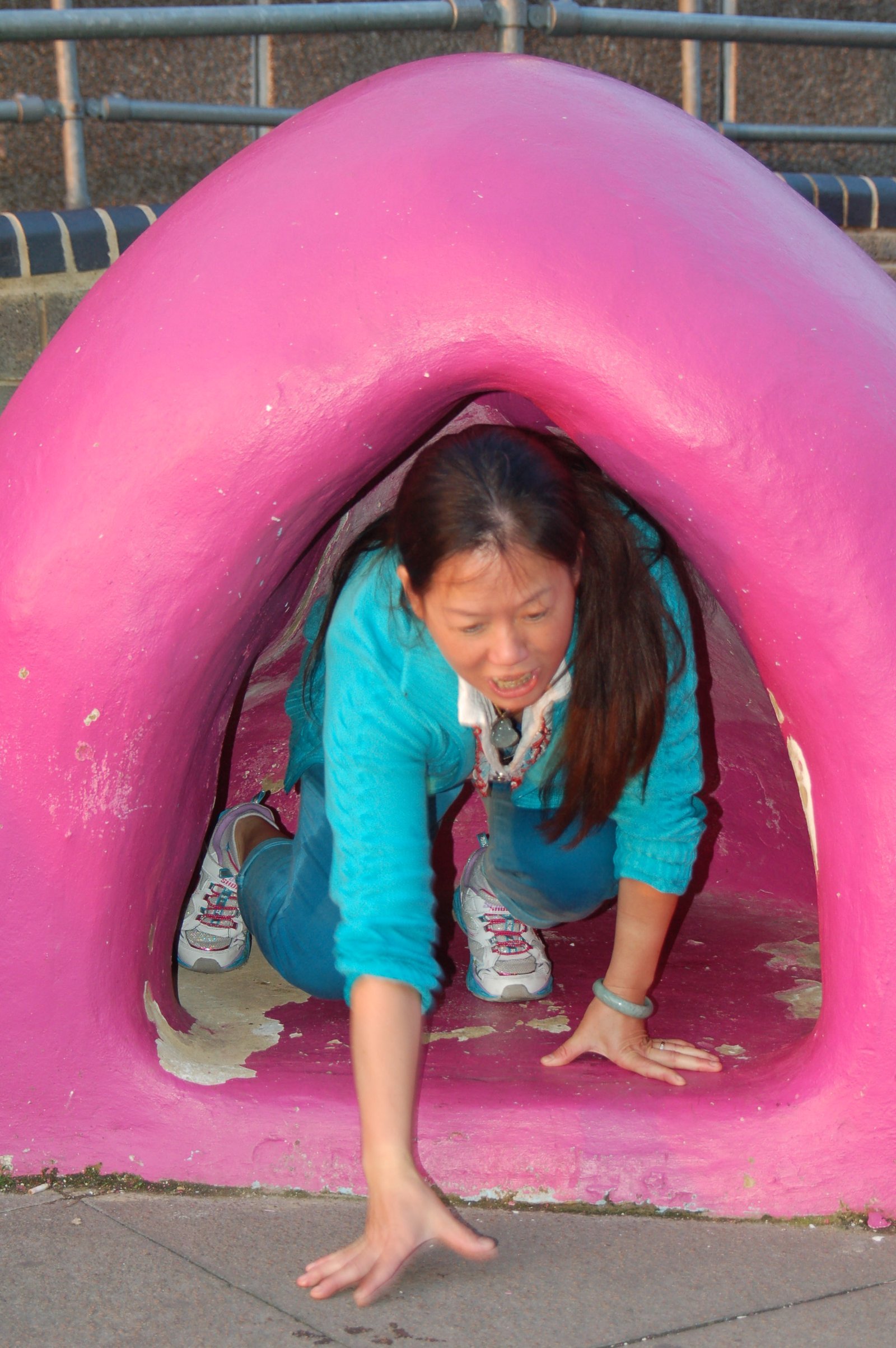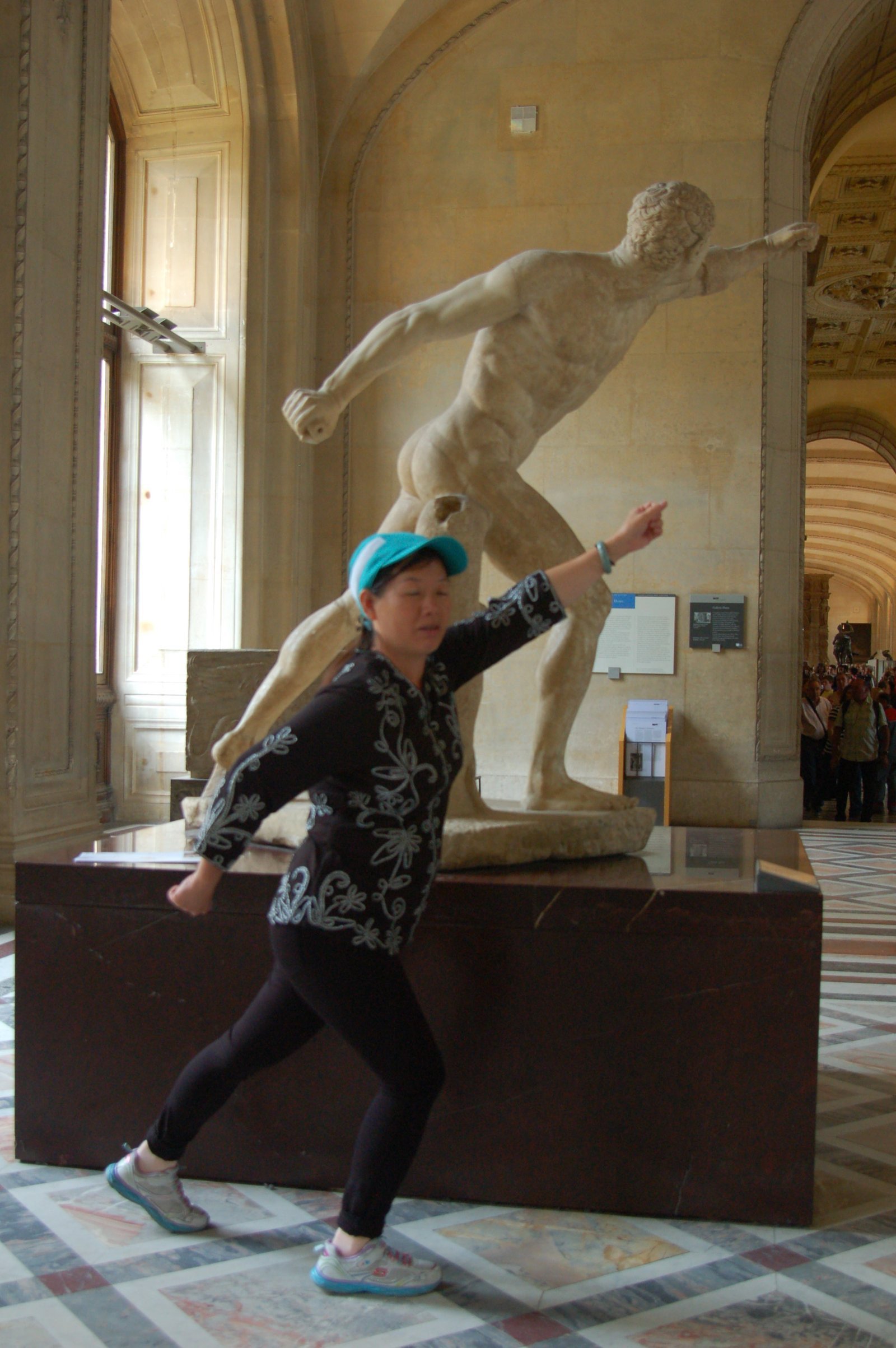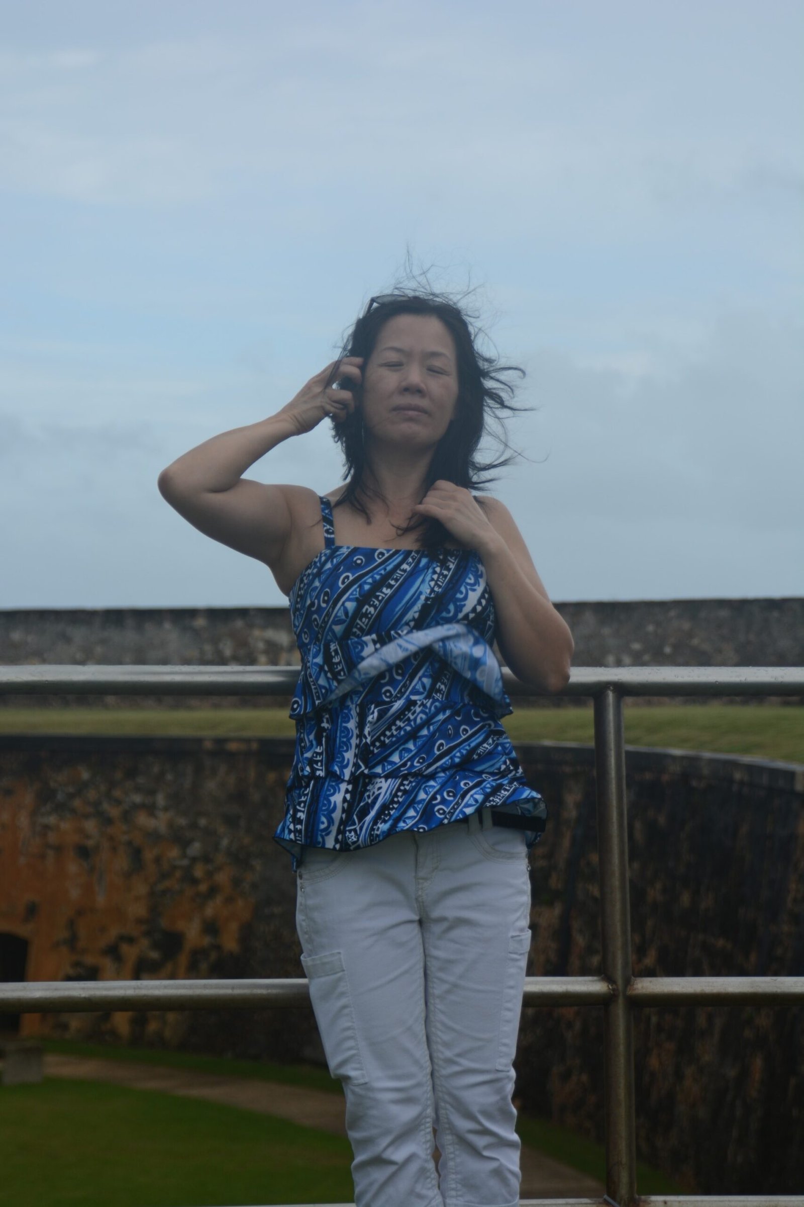 Winnie imitating the Statue of Liberty. On a trip in October 2010, after gaining her American Citizenship. New York Harbor, New York.