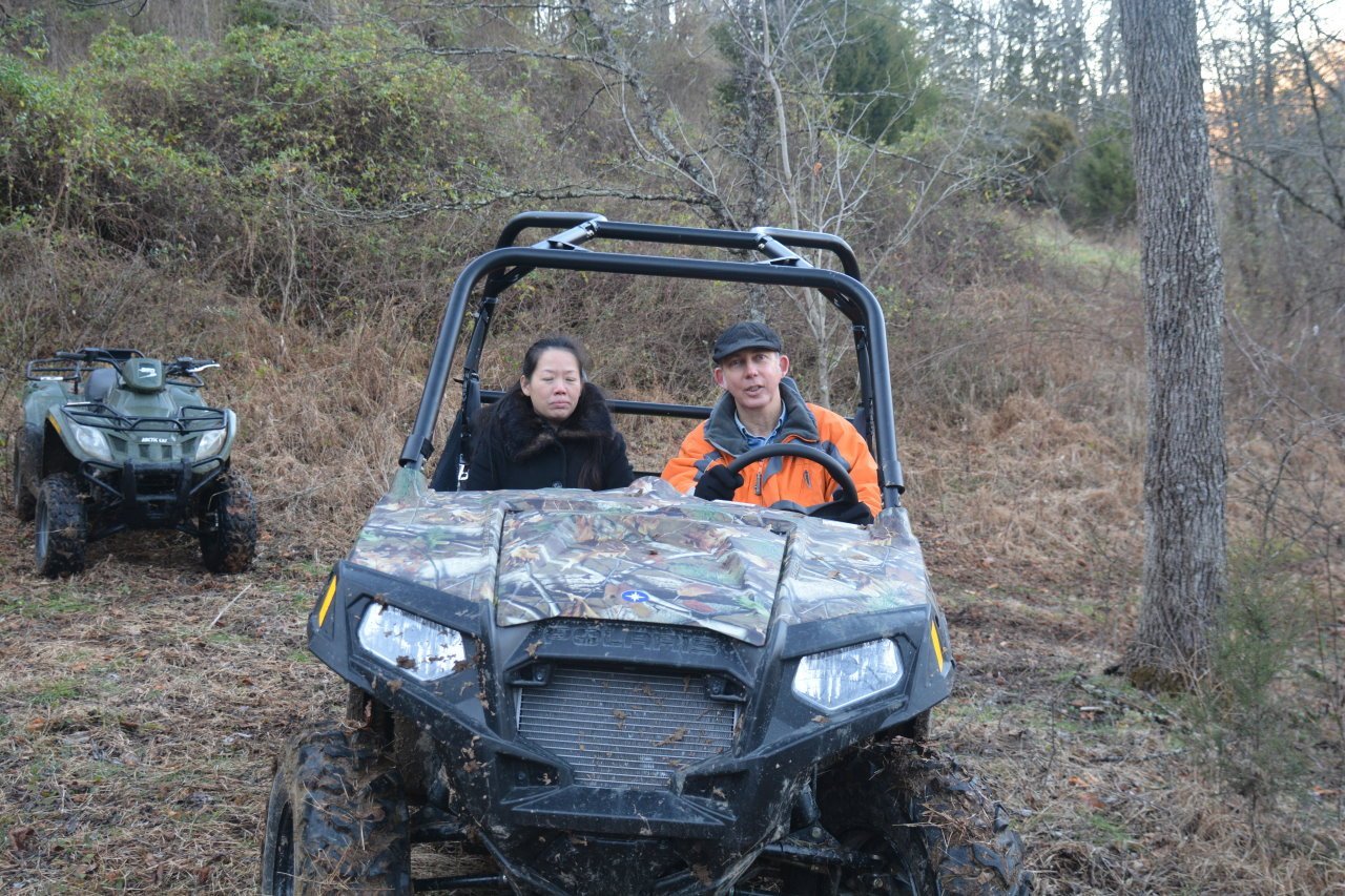 Winnie and Pauline Riding an ATV at Cousin Richard Herteau's home in Massachusetts with cousin Pauline