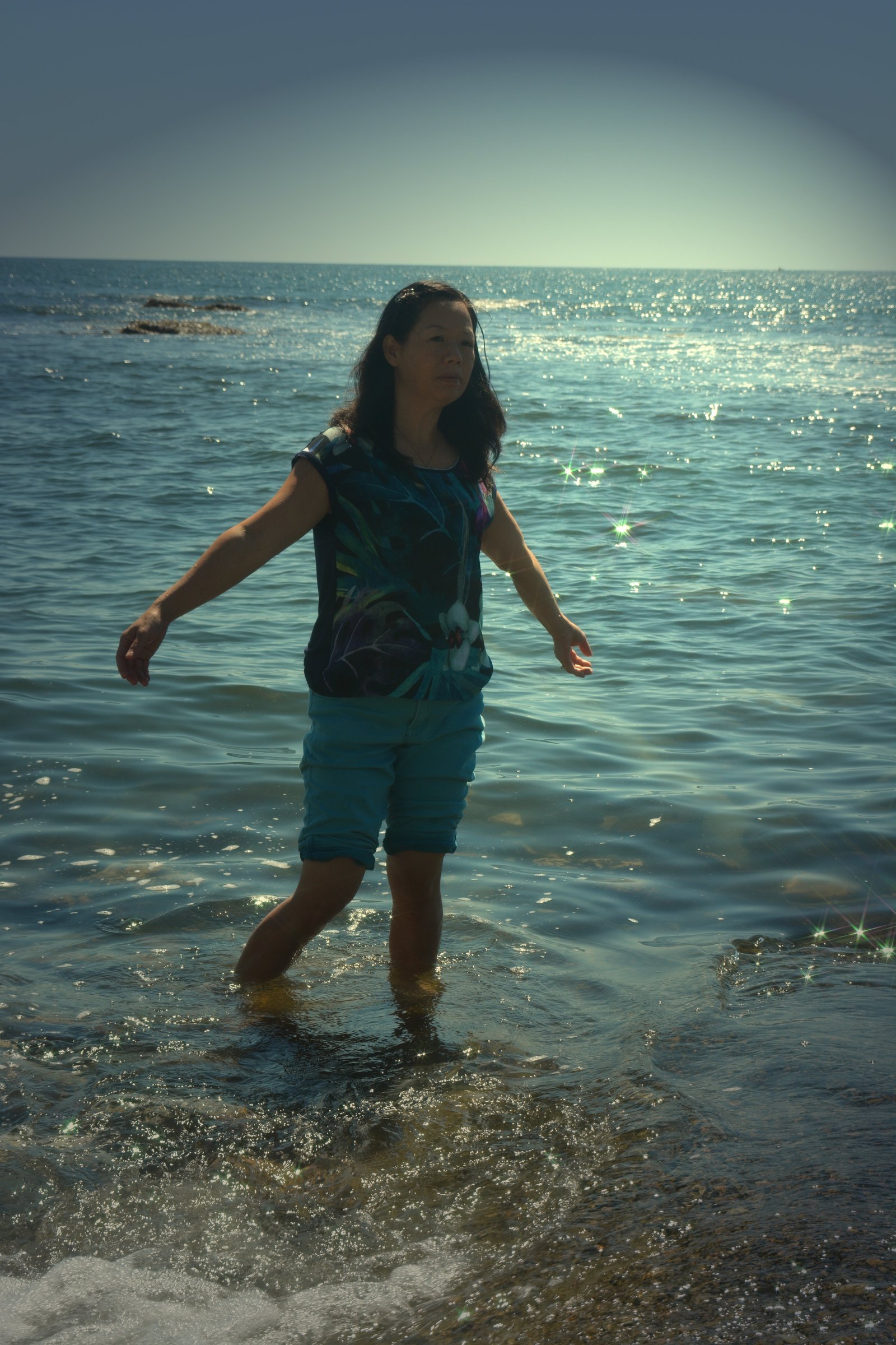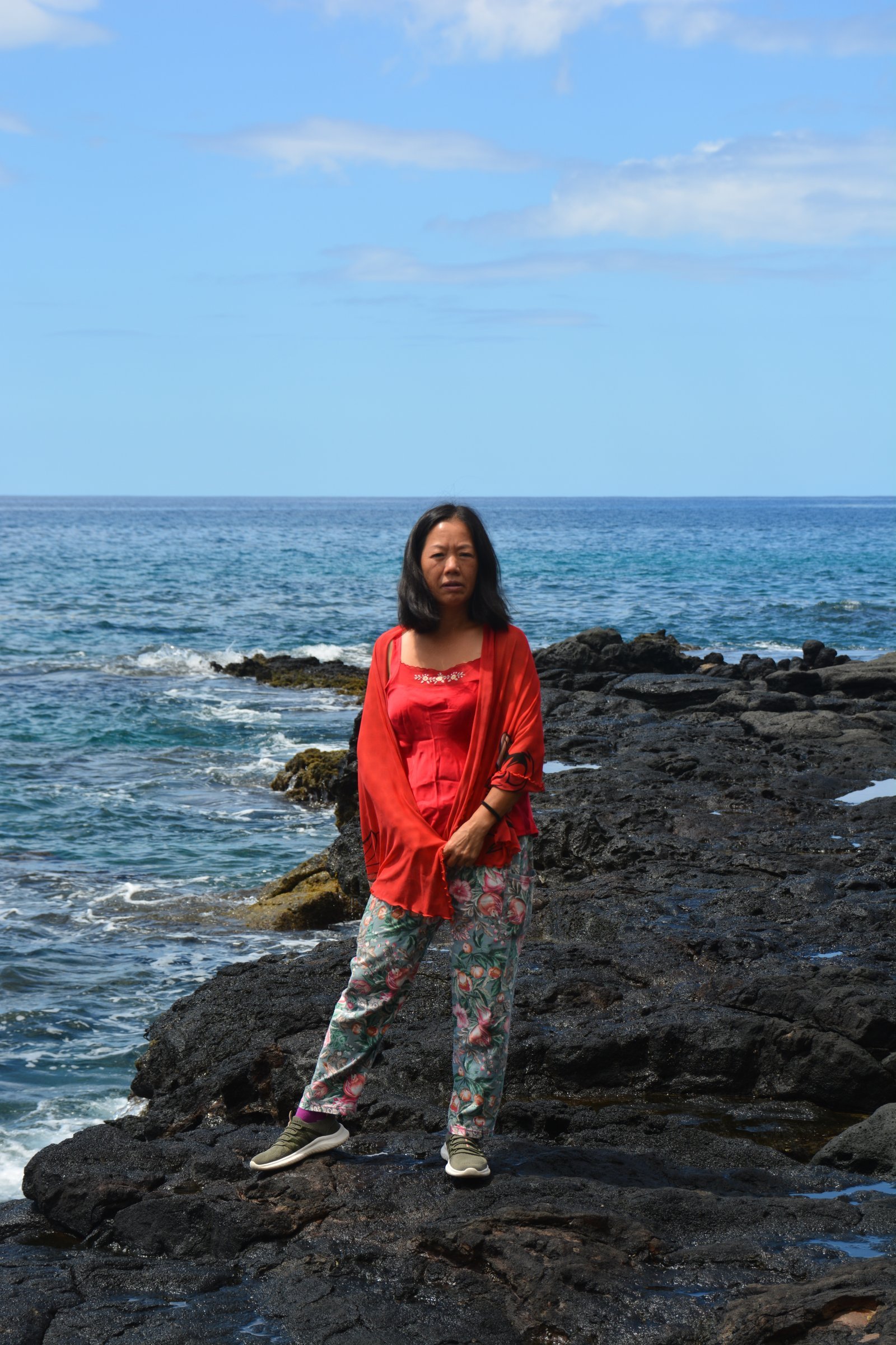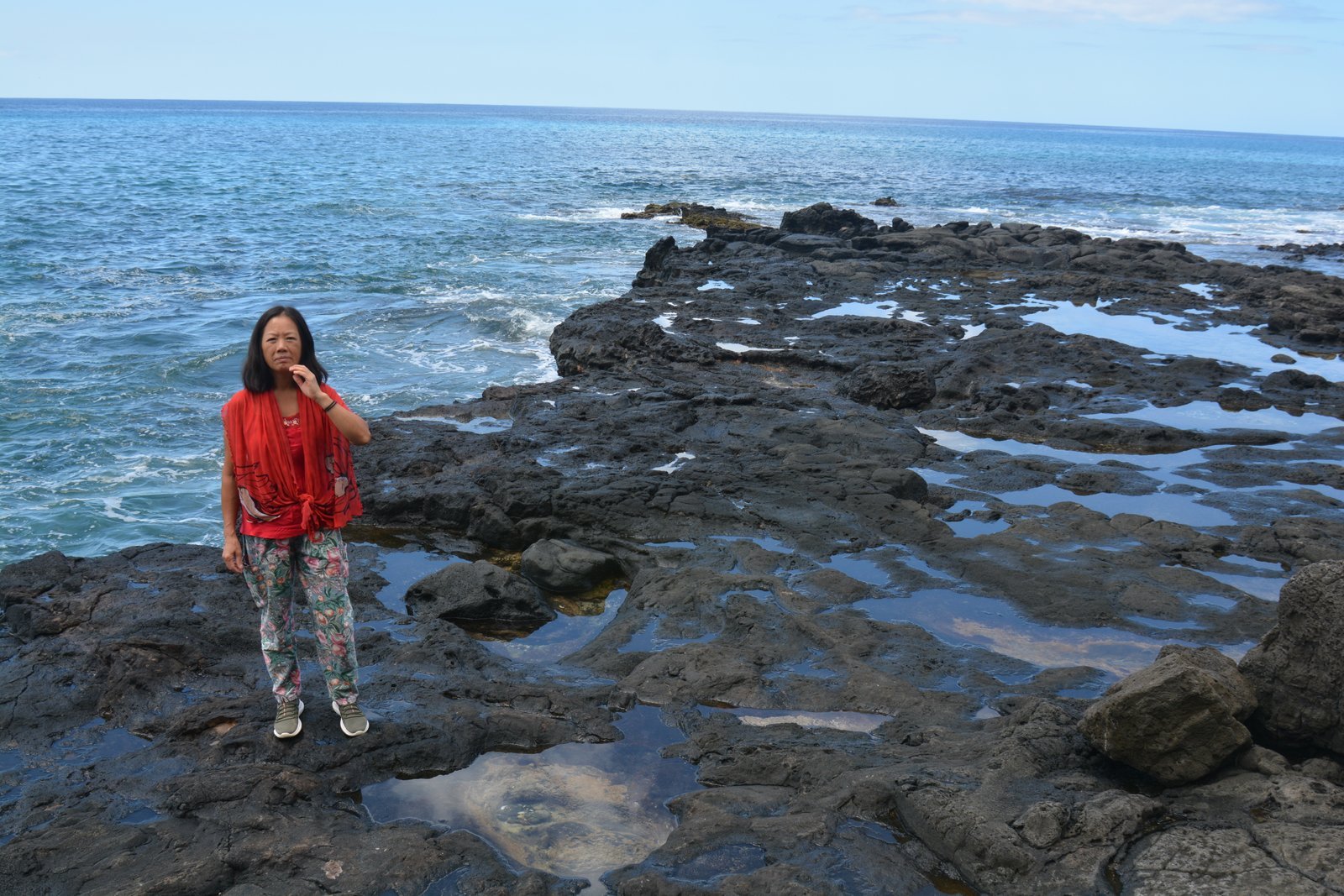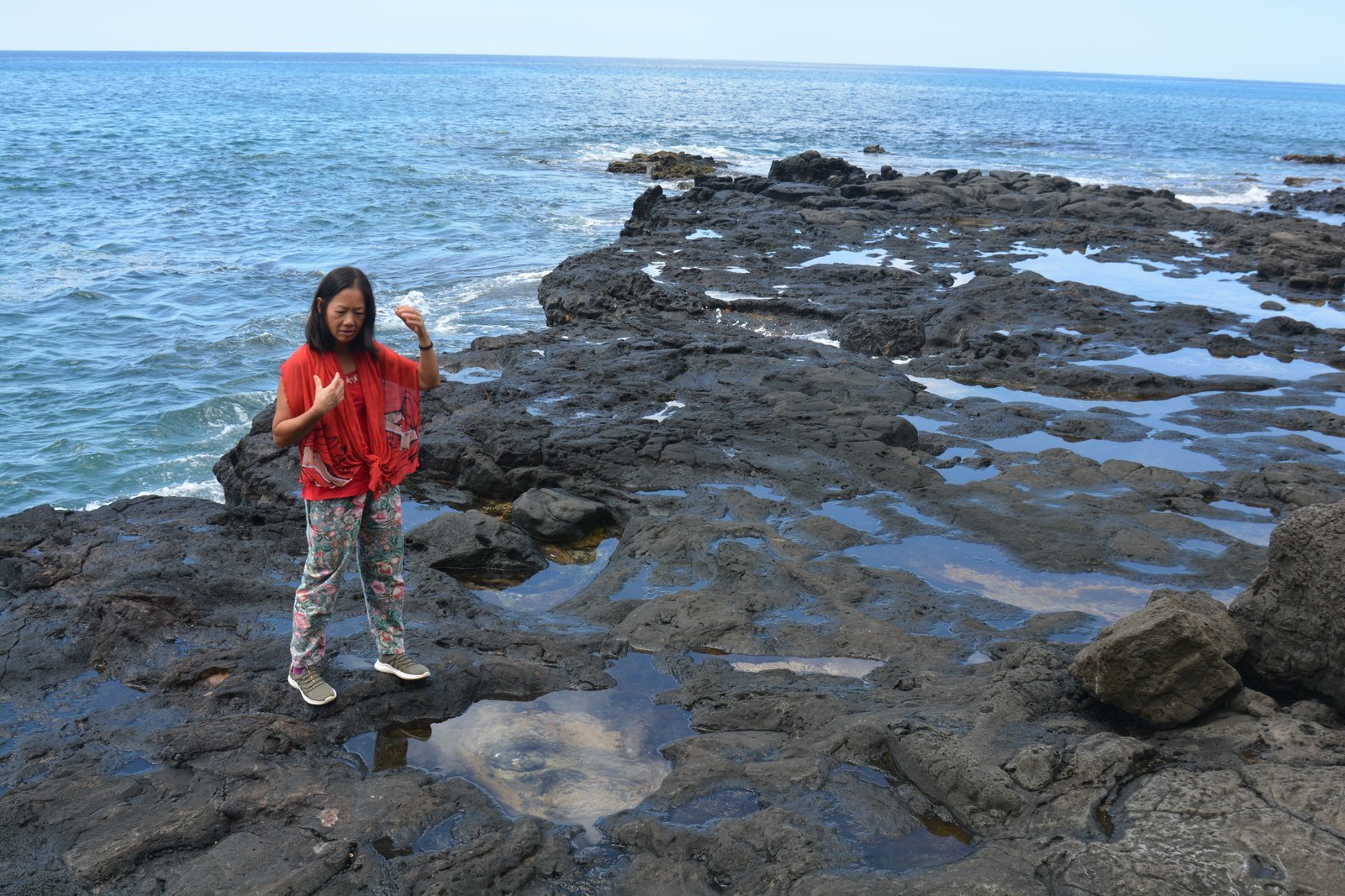 Winnie on the lava rock tidal pools at Yokohama beach. Leeward (west) side of Oahu, Hawaii.