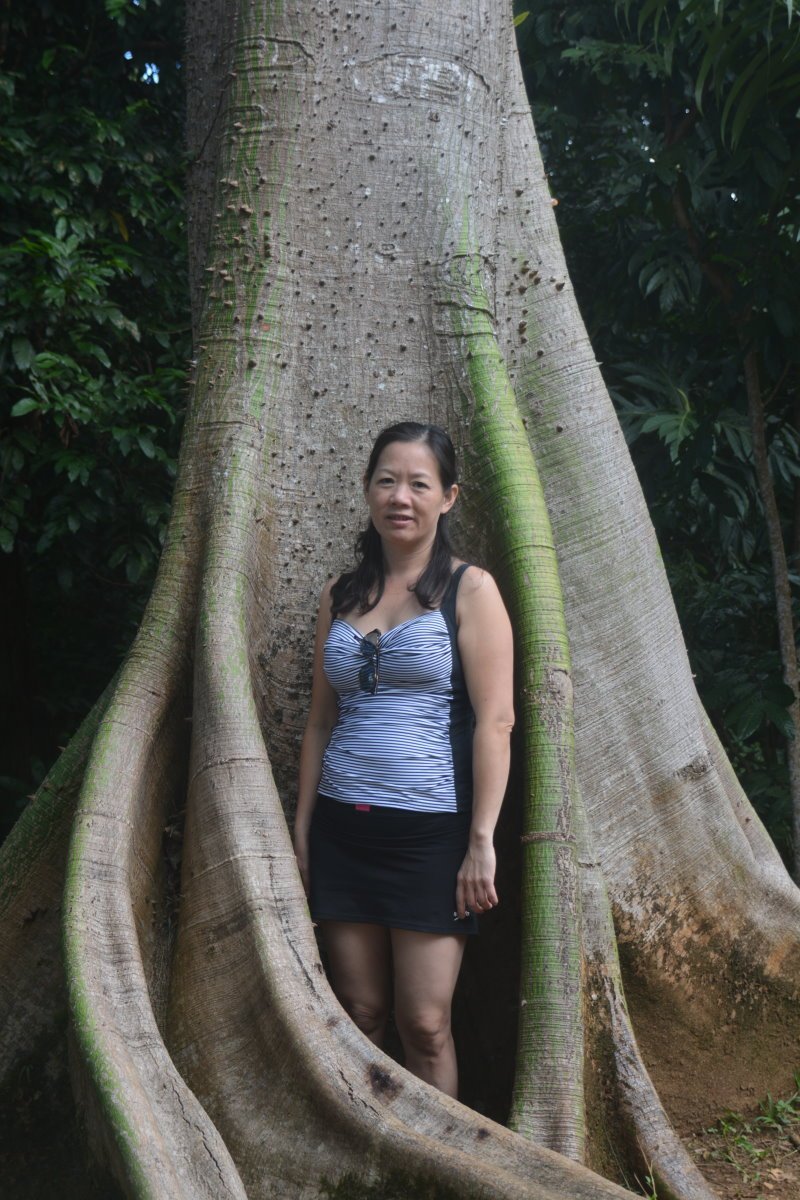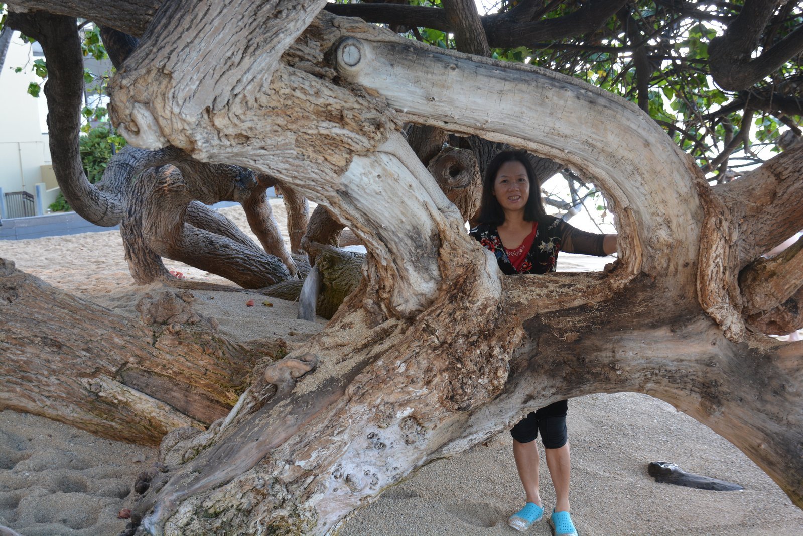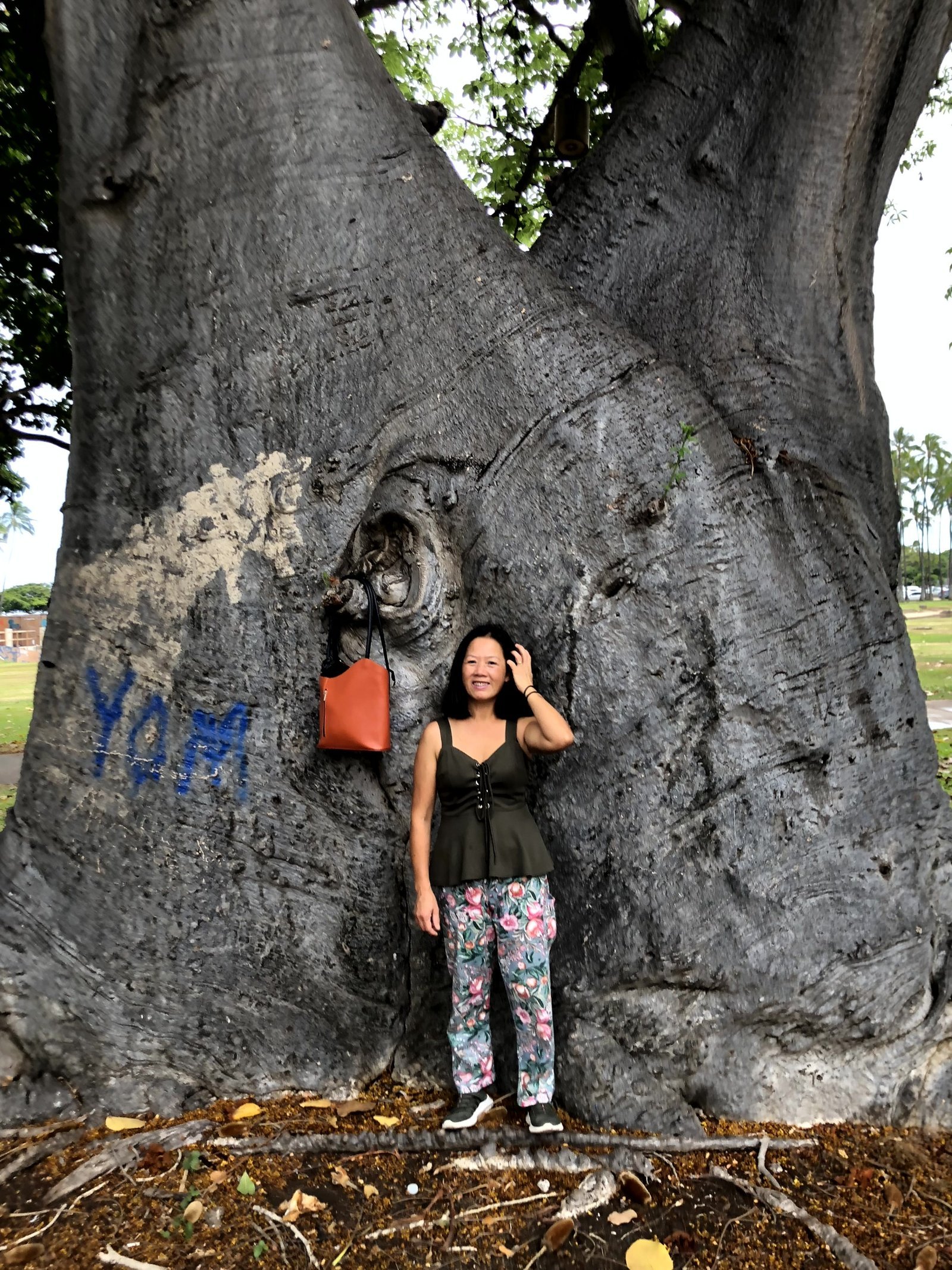 Winnie in Ala Moana Park, island of Oahu, Hawaii, in front of one of the banyan trees. September 25, 2022