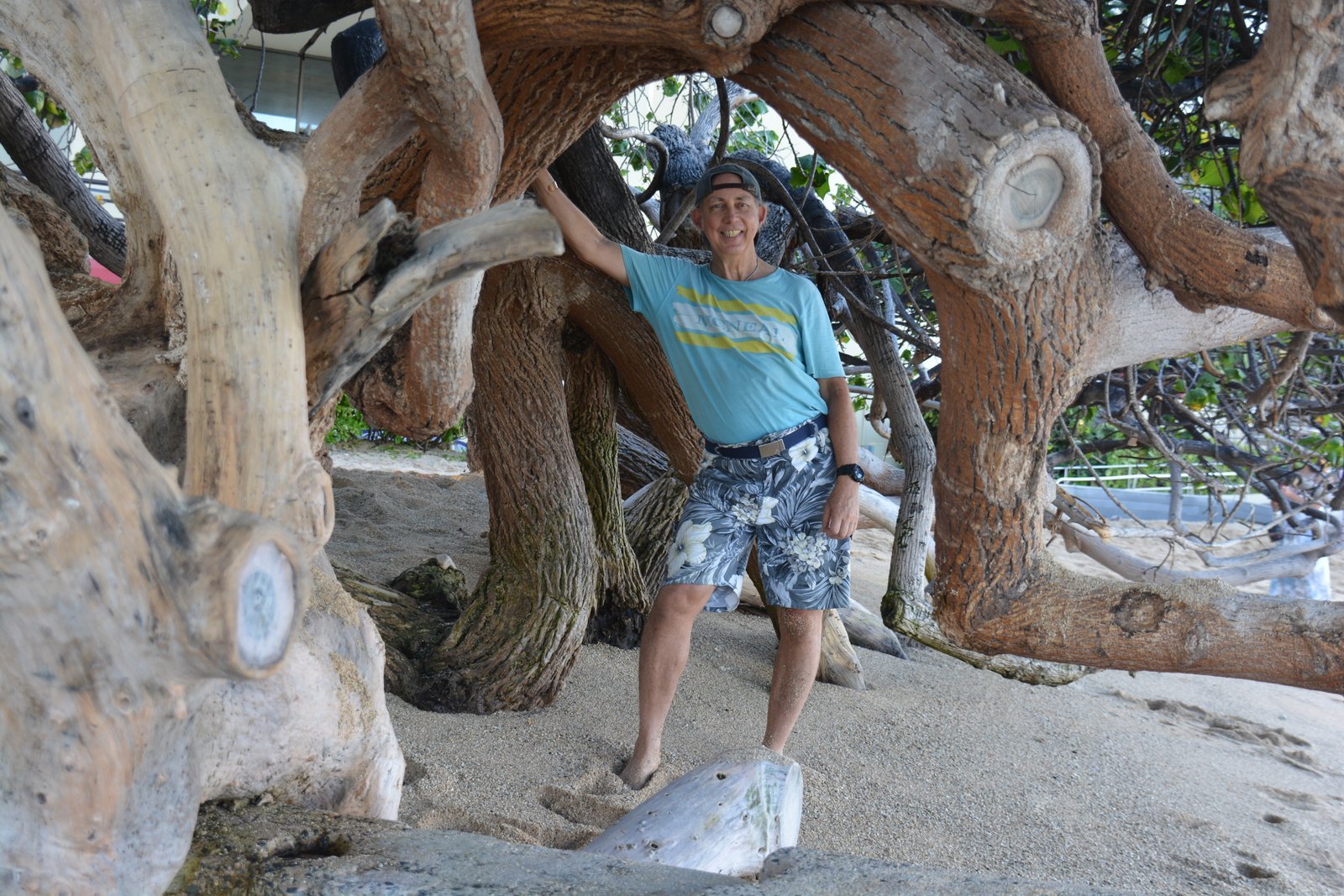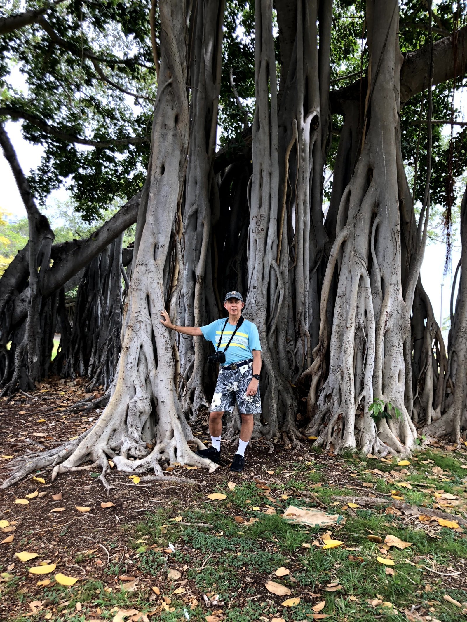 Ron posing in front of one of teh exoctic tropical trees in Ala Moana park, Island of Oahu, Hawaii. September 25, 2022