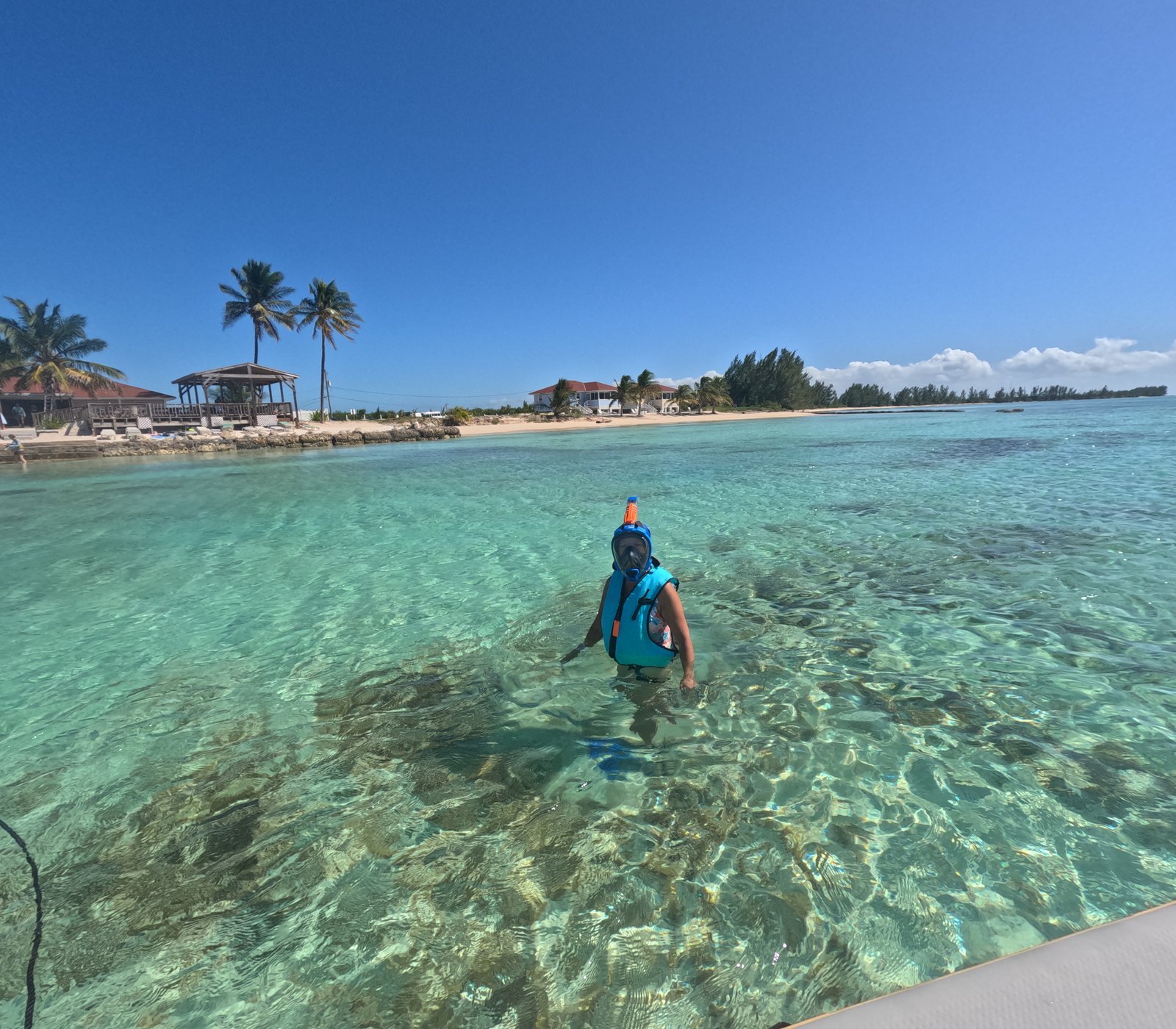 Winnie snorkeling in the crystal-clear waters of Paradise Cove Beach Resort, on Nassau, The Bahamas.