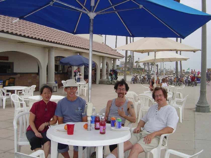 Winnie's second day in America. At a Los Angeles beach with Ron, Howard, Pam and Jeff
