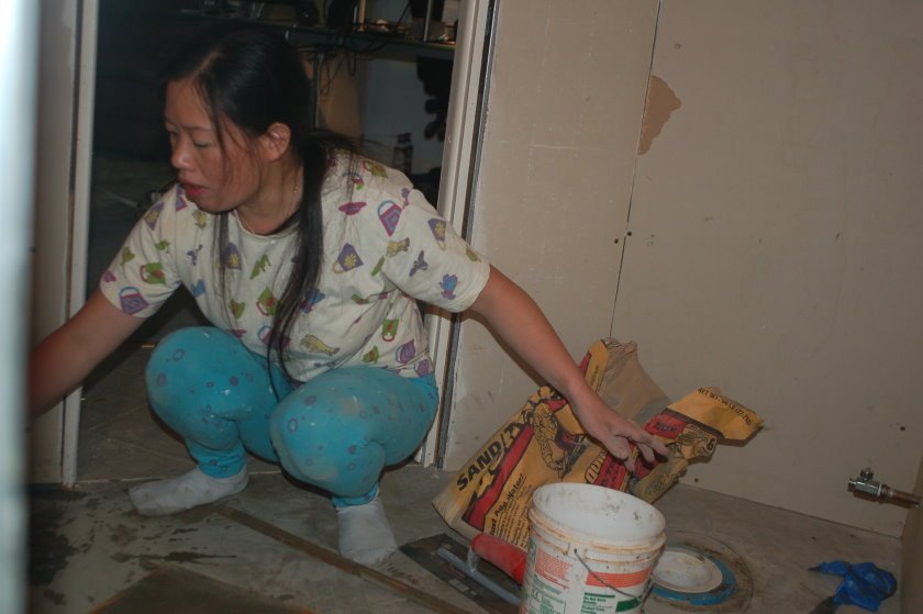 Winnie is the expert cement and tile person in this household. When we remodeled our basement bath, Winnie did the tile work. Dale City, Virginia