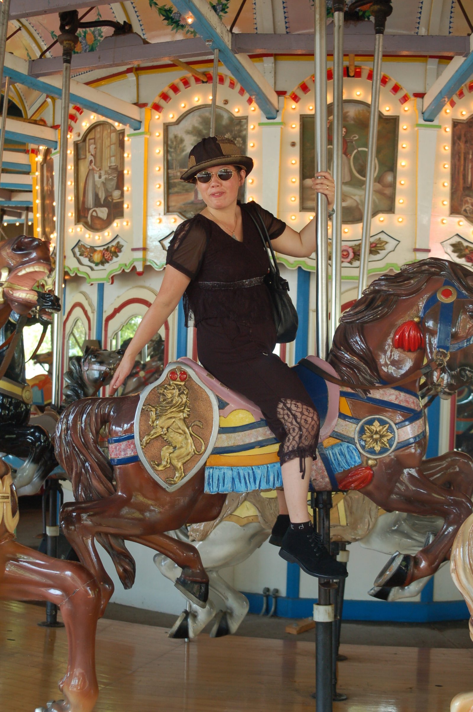 Winnie riding the carousel at King's Dominion Park, Virginia