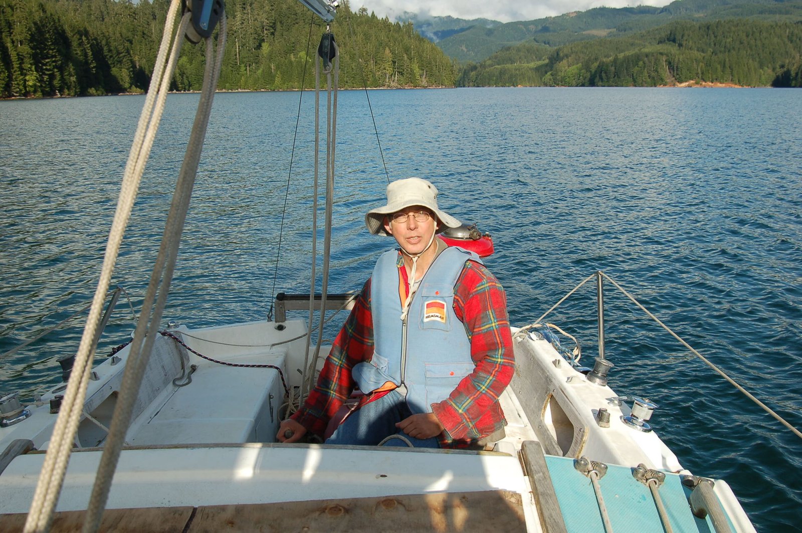 Ron sailing on Green Lake, Oregon, in a 21 foot Catalina sailboat