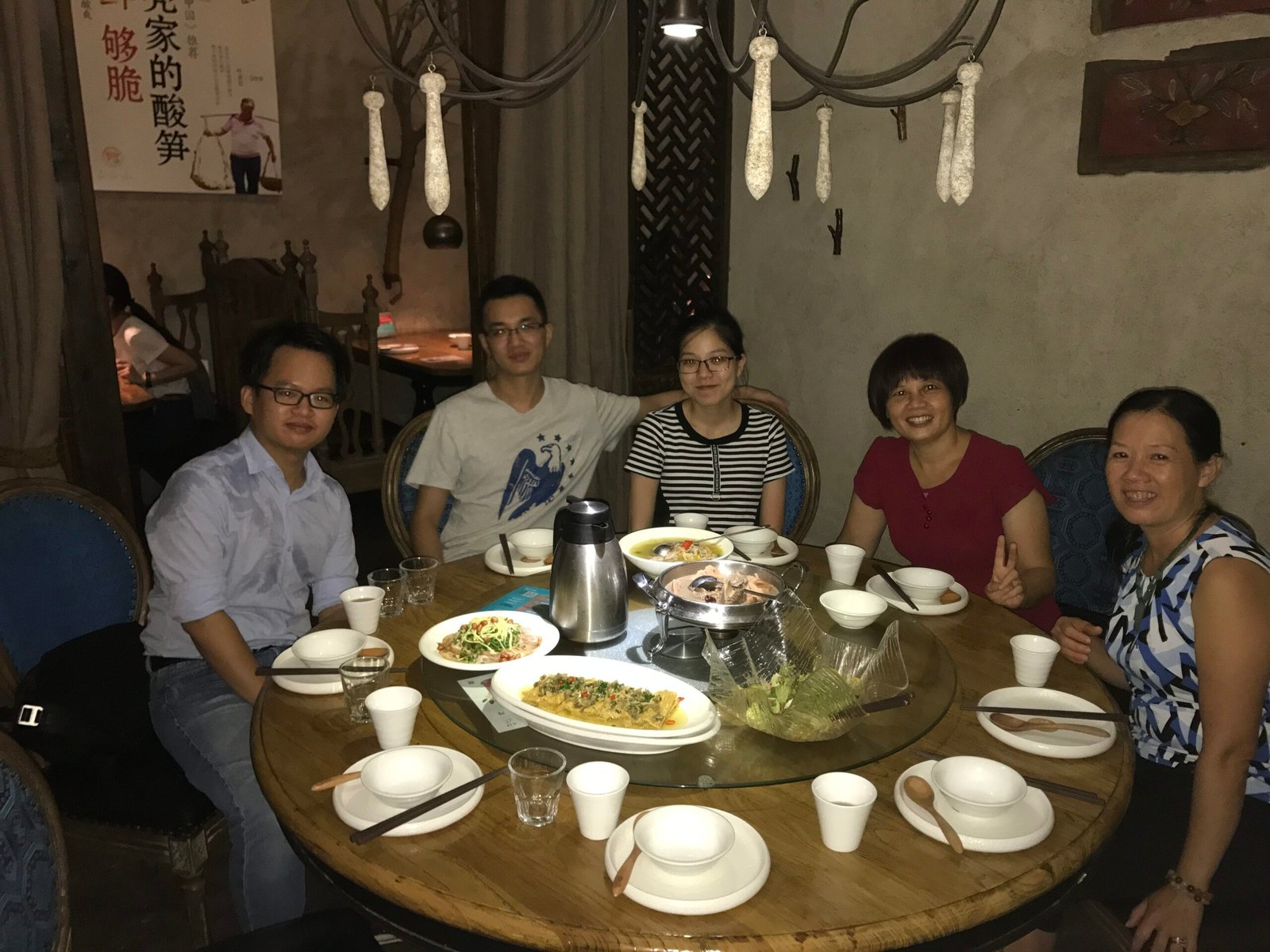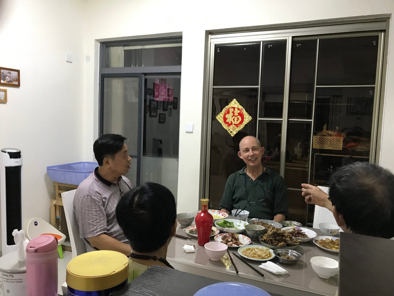 Winnie's first night in America. At dinner in Los Angles with Howard, Pam, and Jeff