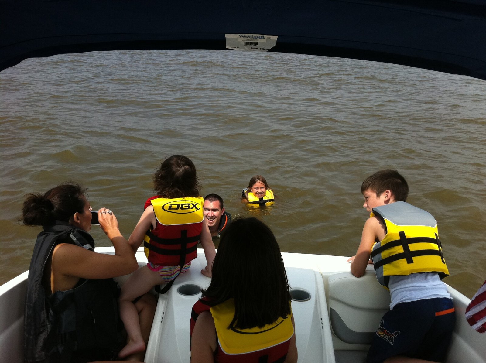 Swimming in the Potomac River, Occoquan Bay, during an outing on Ron and Winie's boat "Sea Dragon."