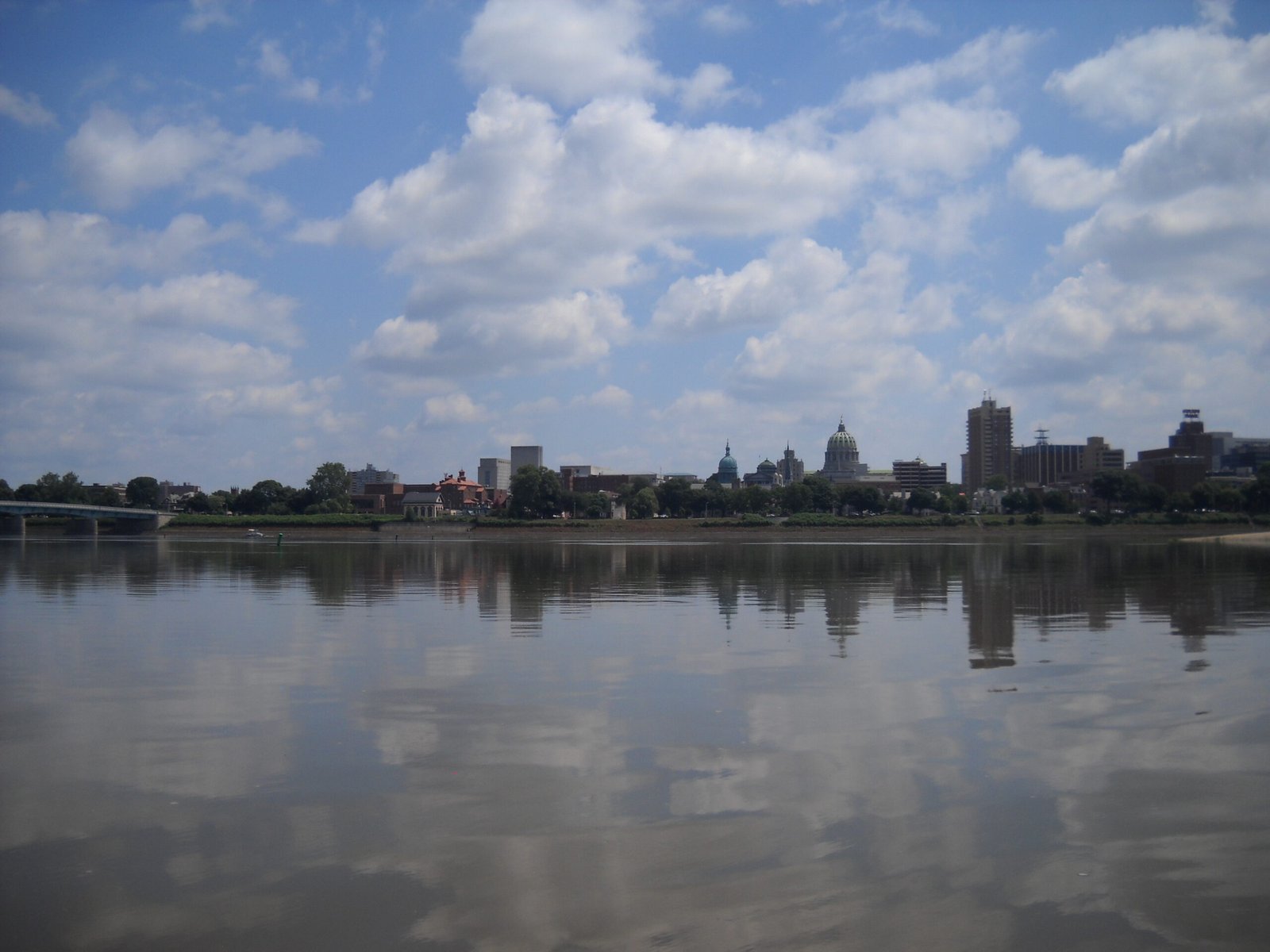 Looking across the Mississippi River in Memphis, Tennessee to the scale pyramid in the background.