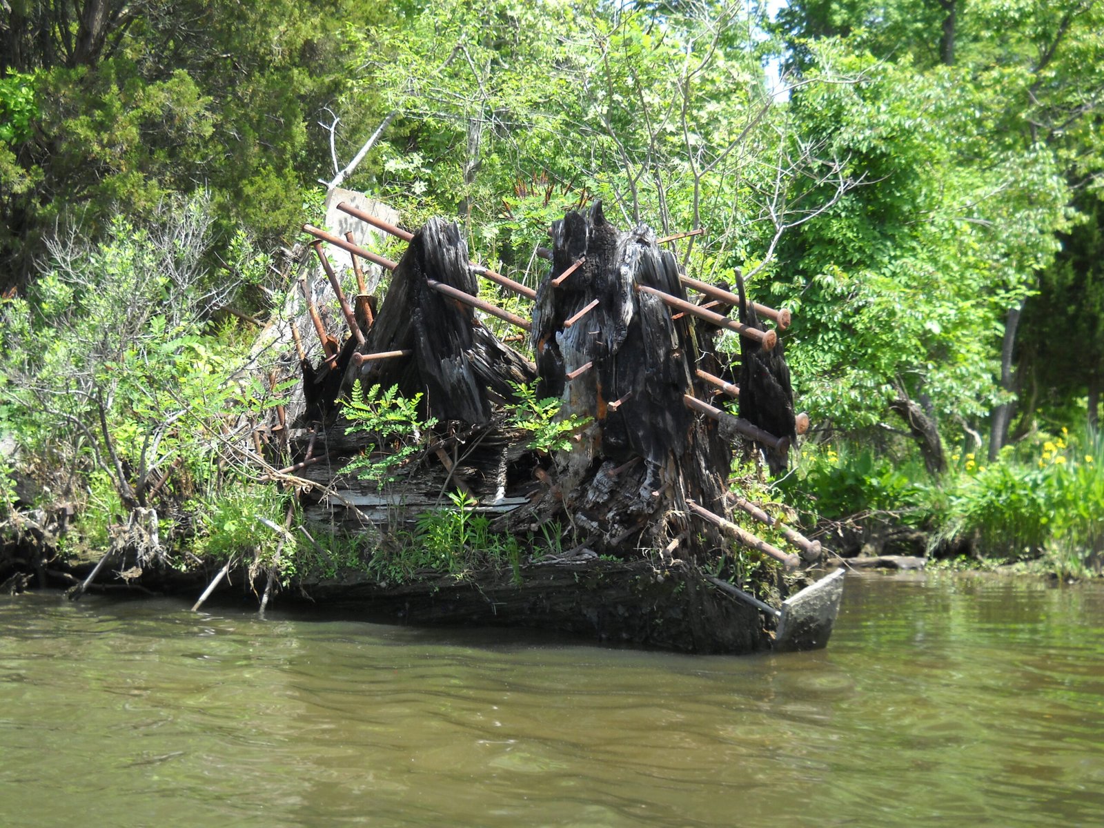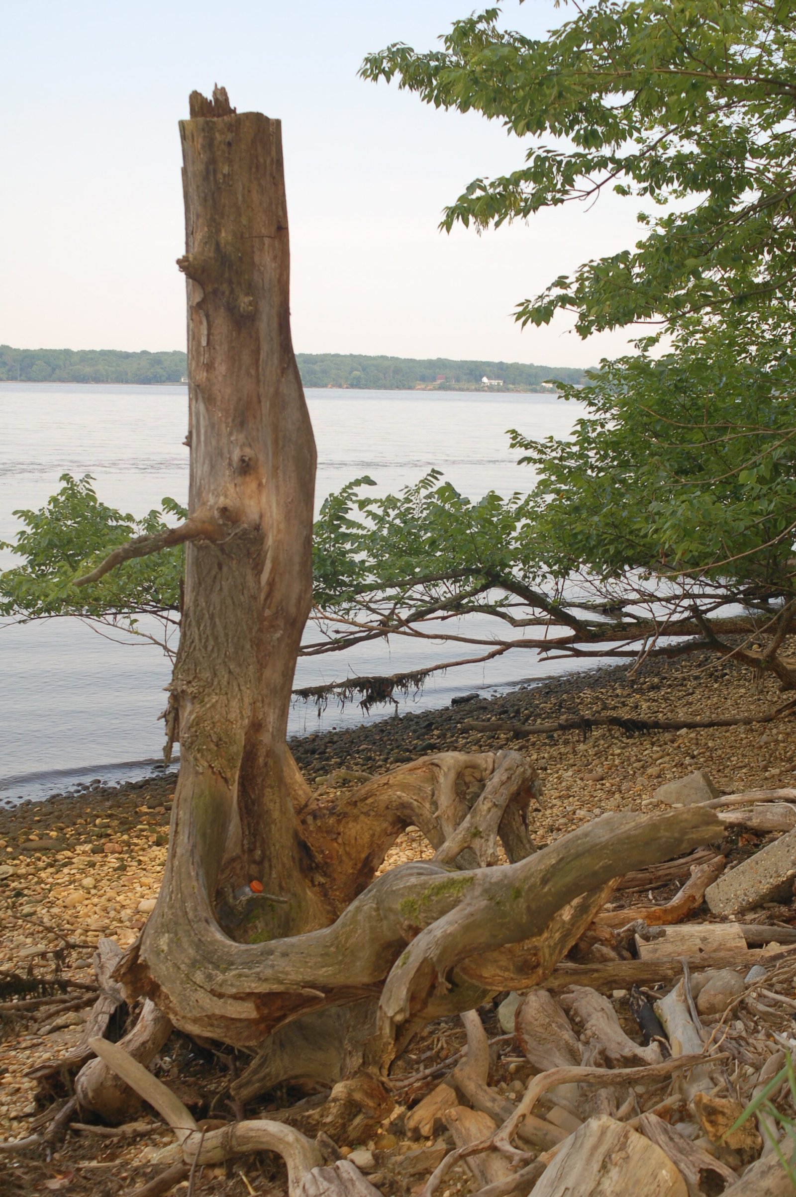 A large piece of driftwood on a beach along the Potomac River, Virginia