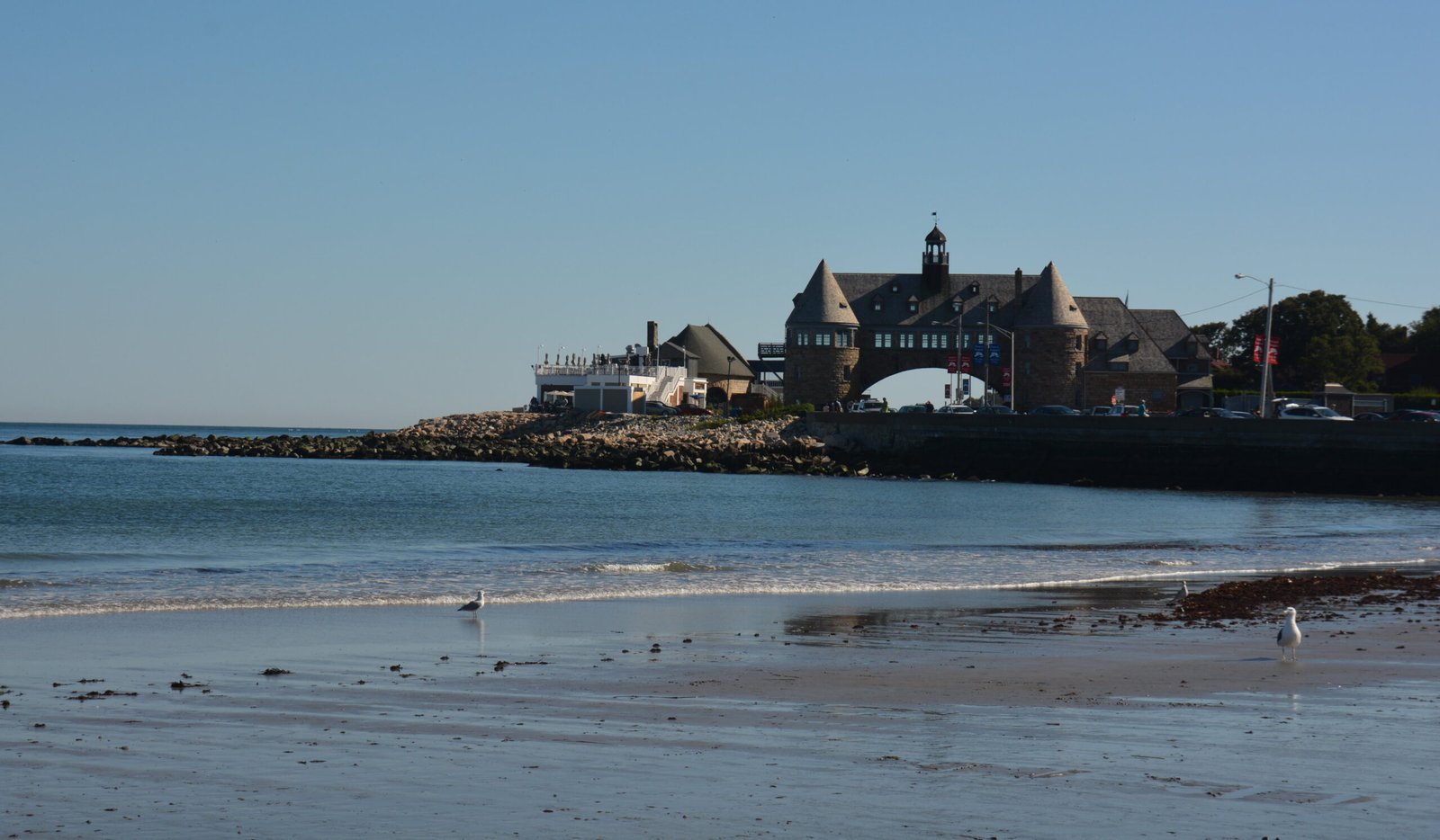 The beach with "The Towers," the landmark of the town of Narragansett, Rhode Island