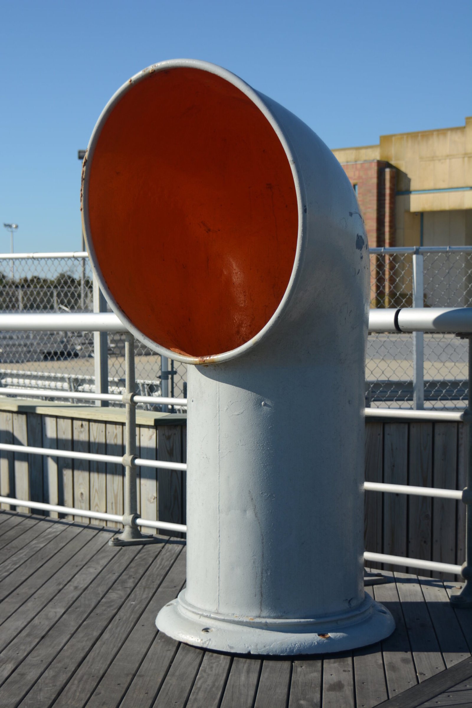 A Trashcan on the Boardwalk of Jones Beach, Long Island, New York. Built in the 1920's, The boardwalk was designed to resemble the deck of ocean liners of that era.