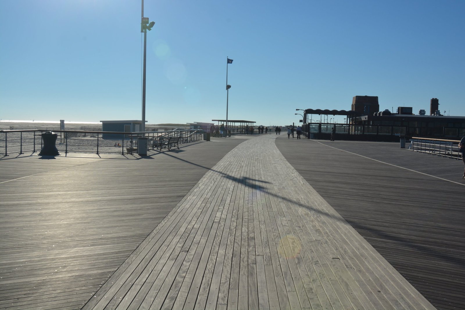 A stretch of the boardwalk on Jones Beach State Park, Long Island, New York. Taken in late afternoon.