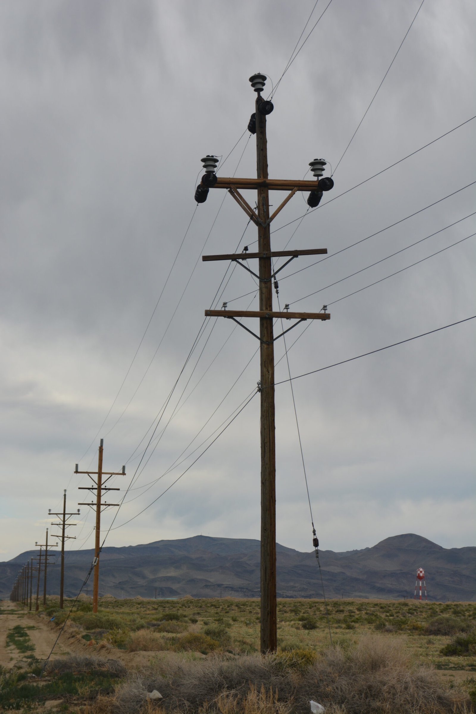 A line of telephone poles along Veteran's Memorial Highway, Hawthorne, Nevada. Nikon D7100 with Tamron 24-135 lens, handheld