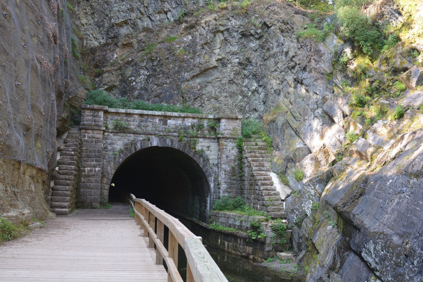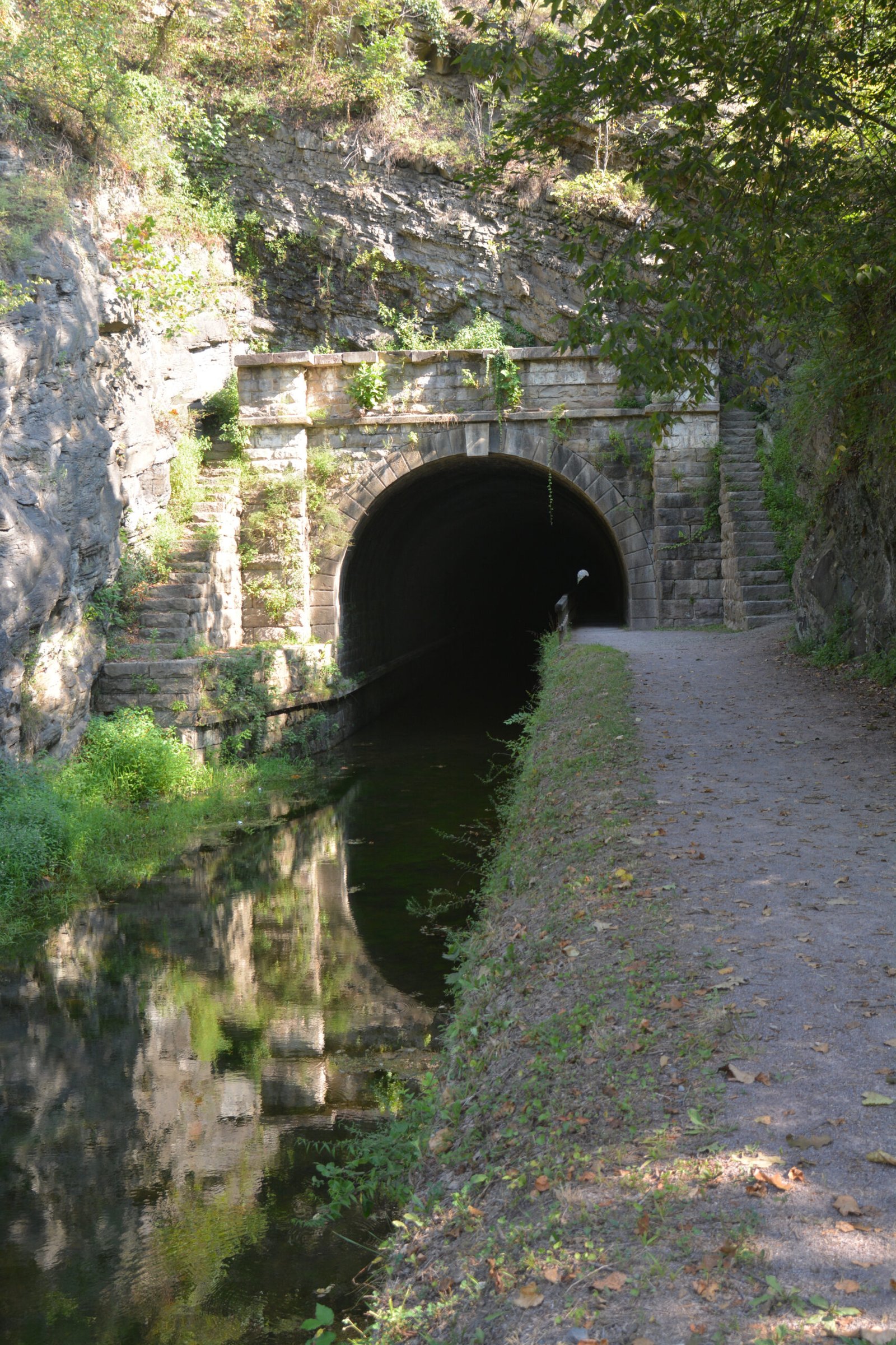 South End of Paw Paw Tunnel, West Virginia. The Paw Paw Tunnel is part of the C&O Canal project, running parallel to the Potomac River and once connecting Ohio to Washington, D.C. This 3,118-foot tunnel was built to save a six-mile detour of the canal around the mountains. Initially projected to take two years to build, it actually took 14 years. THis was part of the 184.5 Mile C&O canal, that operated for almost 100 years.