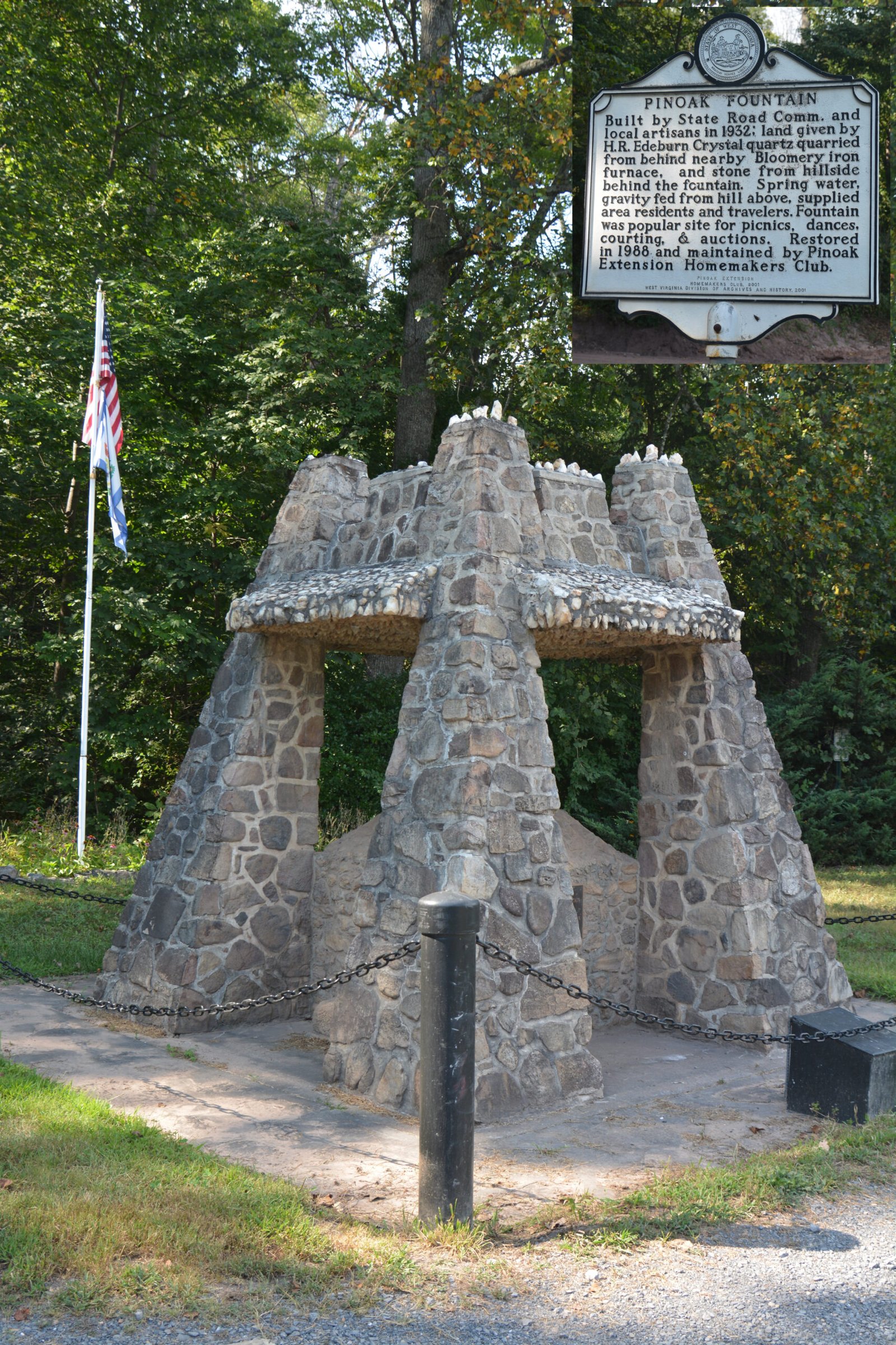 Pin Oak Fountain, built in 1932 by the road commission and local craftsmen. Located along Highway 29 (Paw Paw Road), outside the town of Paw Paw, West Virginia